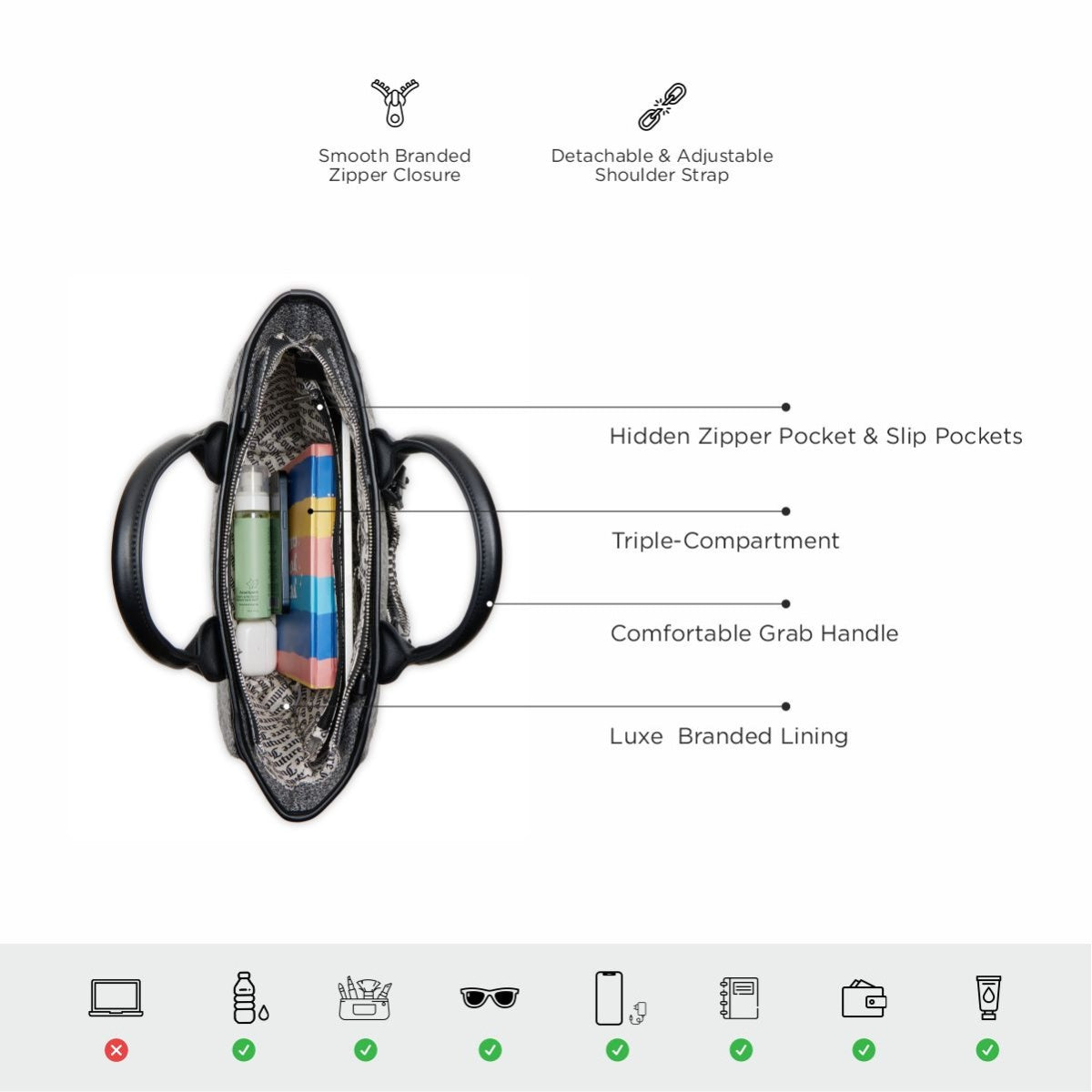Organized & Functional: Stay effortlessly organized with triple-compartment functionality, a secure middle zipper compartment, hidden zipper pocket for essentials, dual slip-in organizer pockets, and branded lining, making this piece a must-have for modern lifestyles.