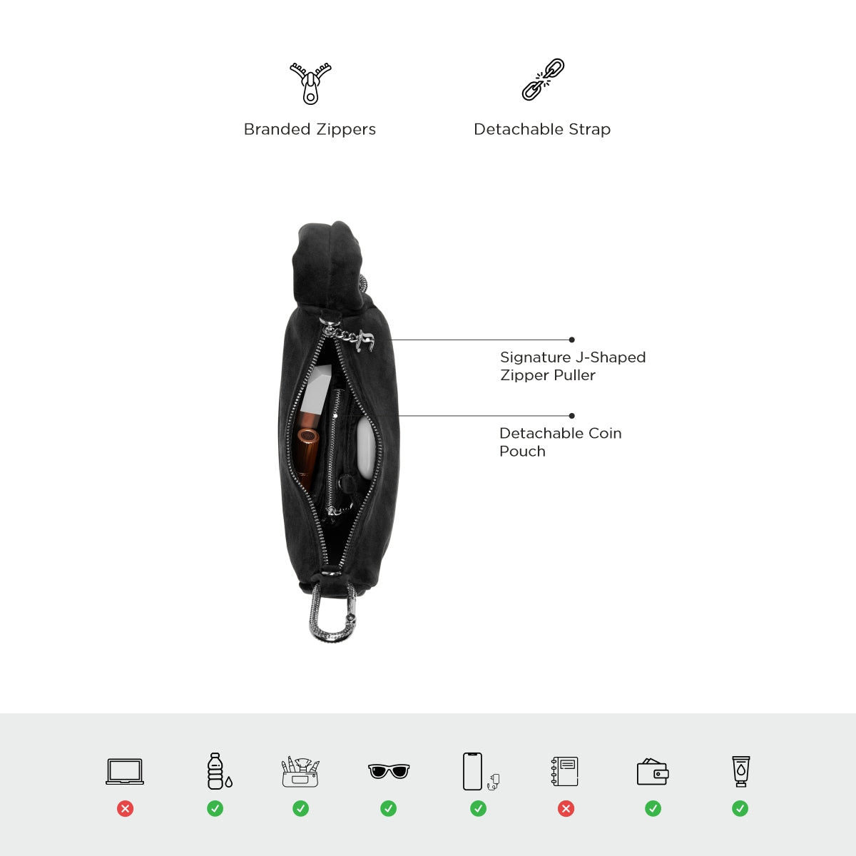 Details that shine: From the embossed crest logo on the slip pocket to the detachable coin pouch and signature J-shaped zipper puller, every accent adds a touch of glam that feels effortlessly bold.