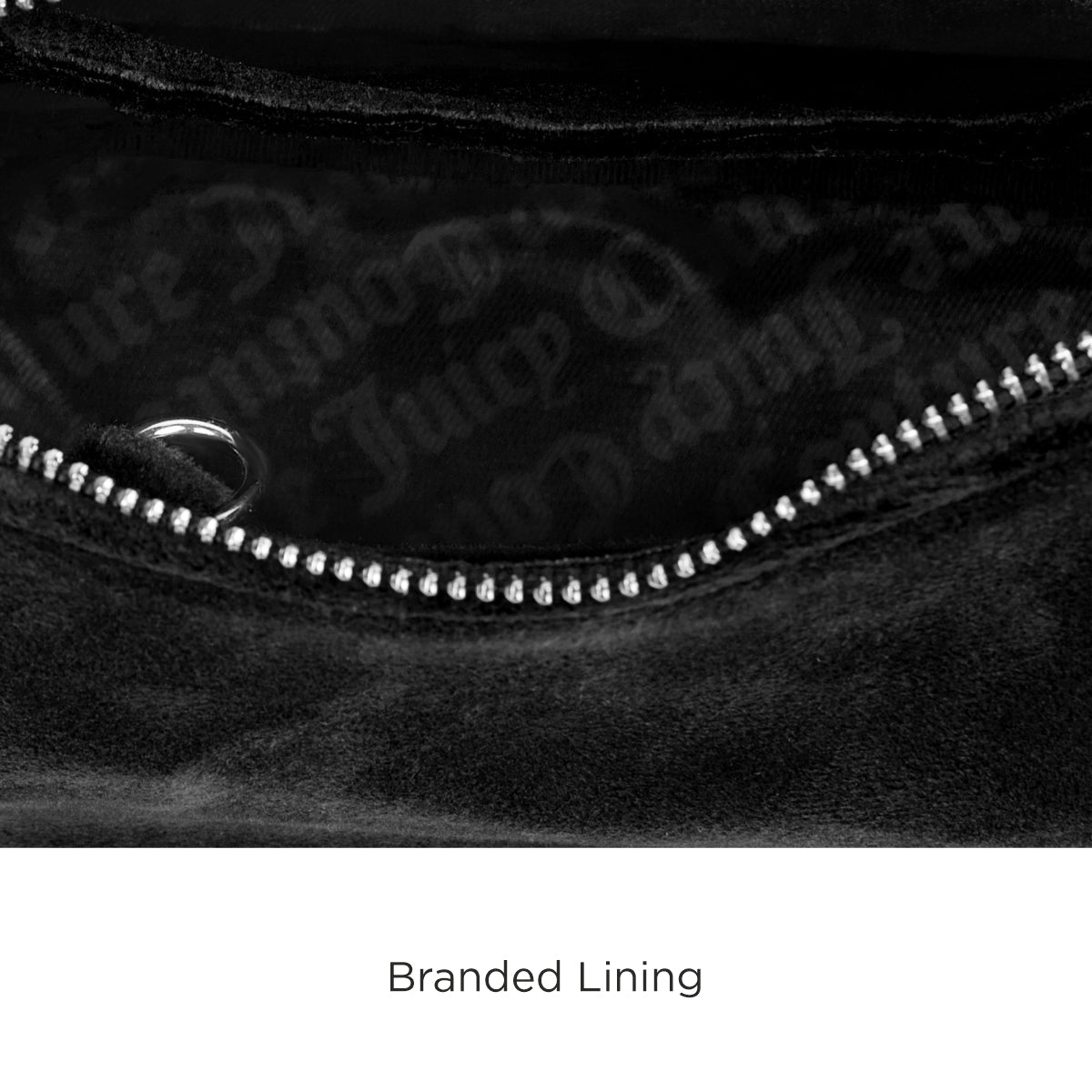 Velvet, but make it iconic: This plush silhouette is finished with classic Juicy branding, a chunky handle, and a detachable strap—so you can switch up your style without missing a beat.