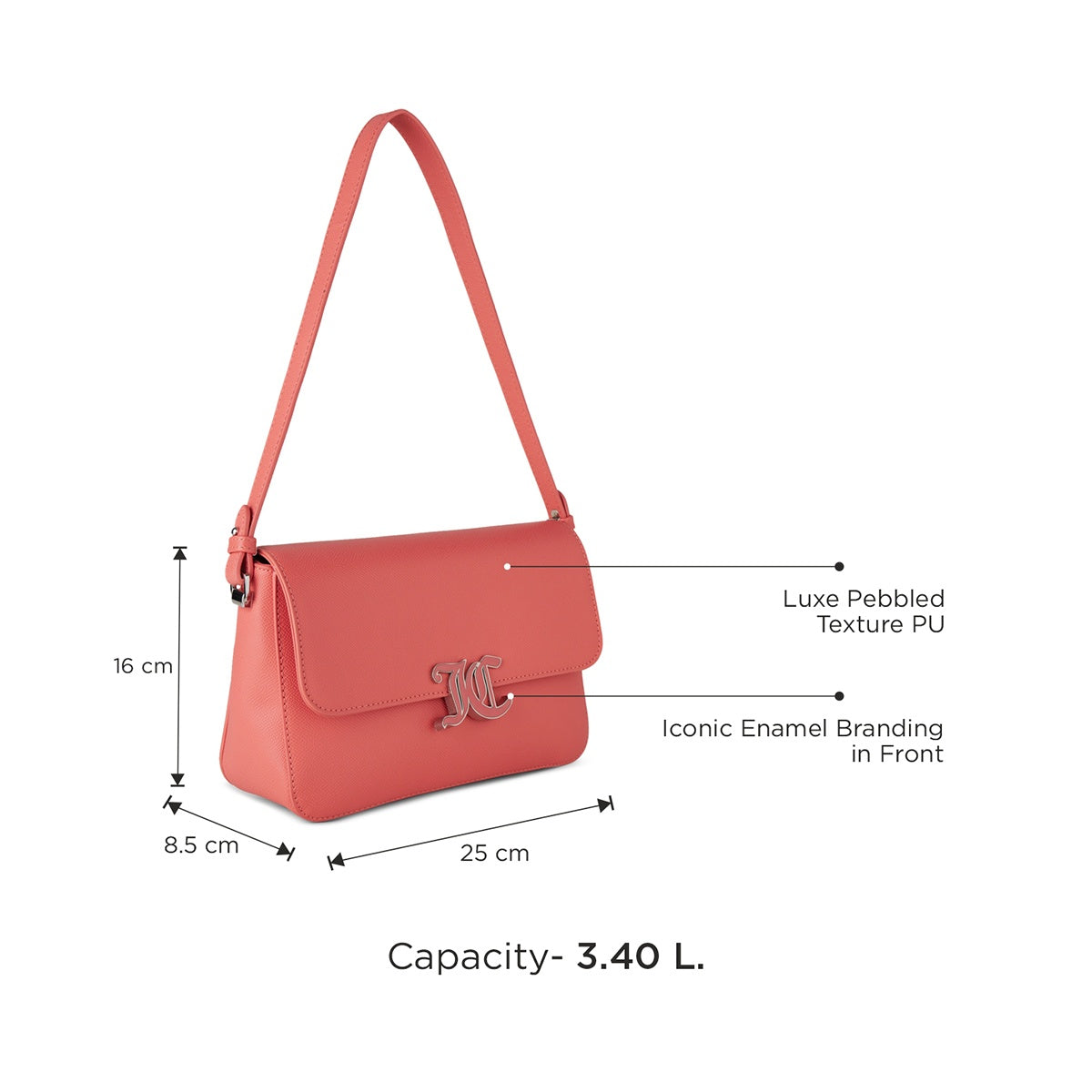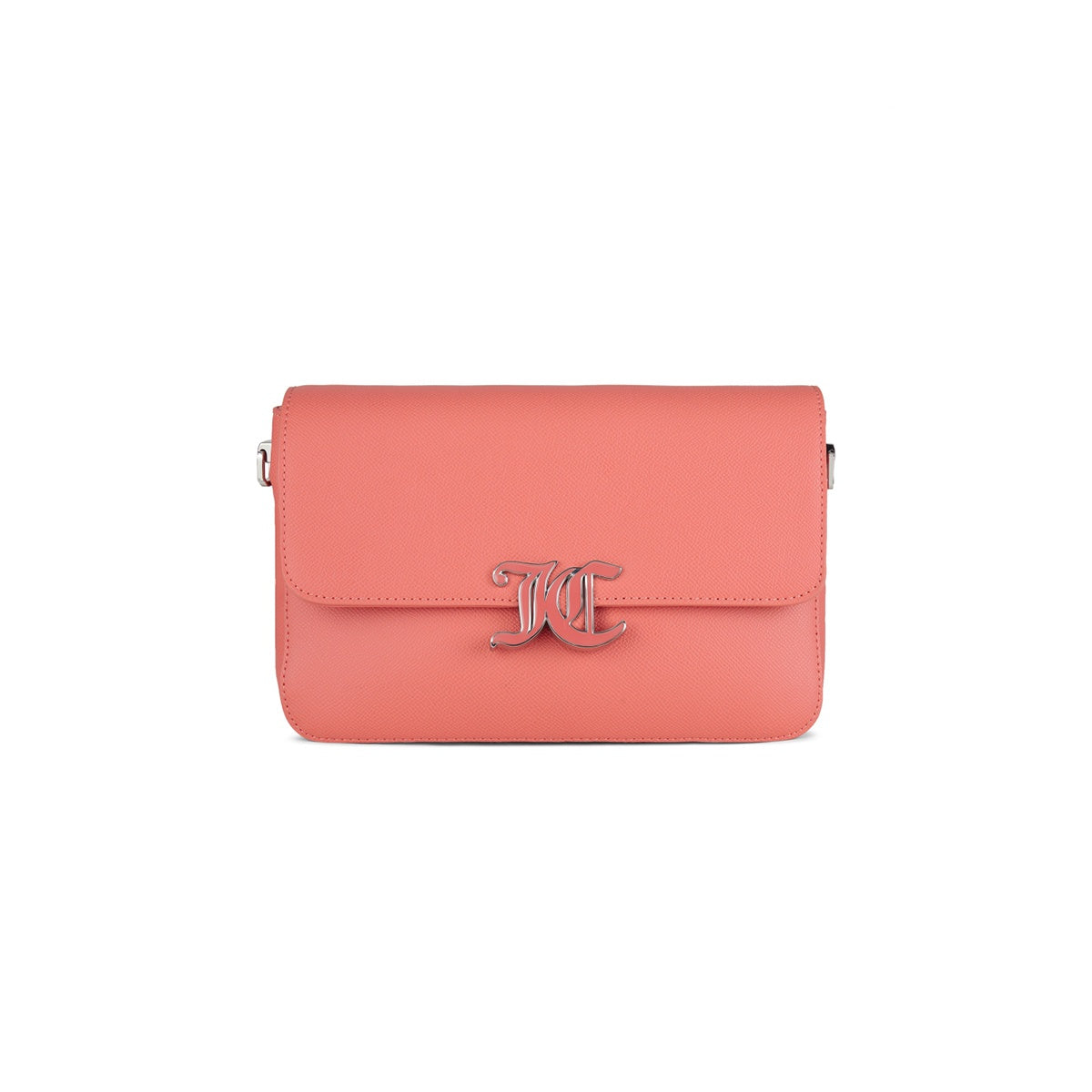 Sophisticated Juicy Couture Style: Flaunt the luxe pebbled texture PU with initials enamel branding in front and signature branding at the back, embodying Juicy Coutures chic allure.