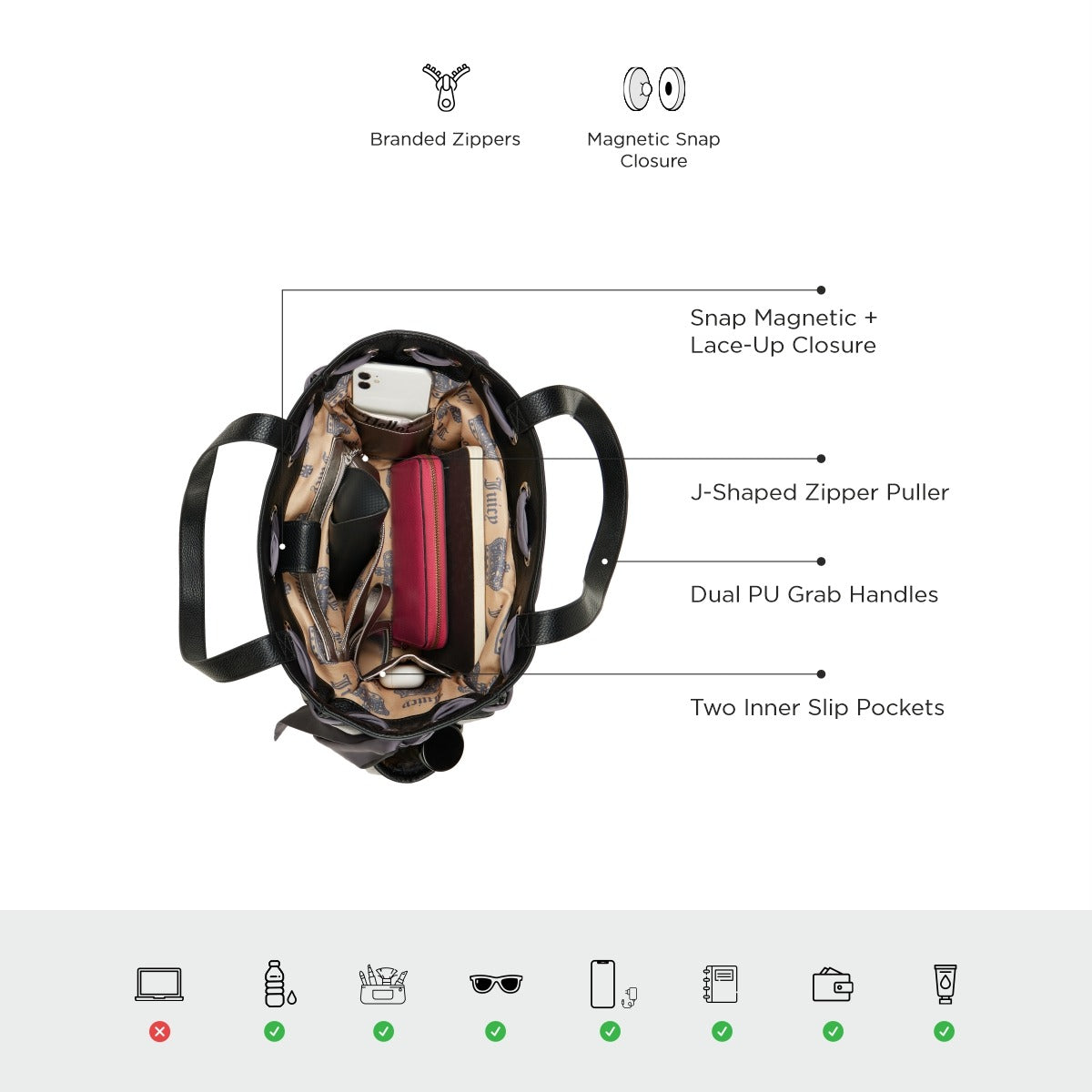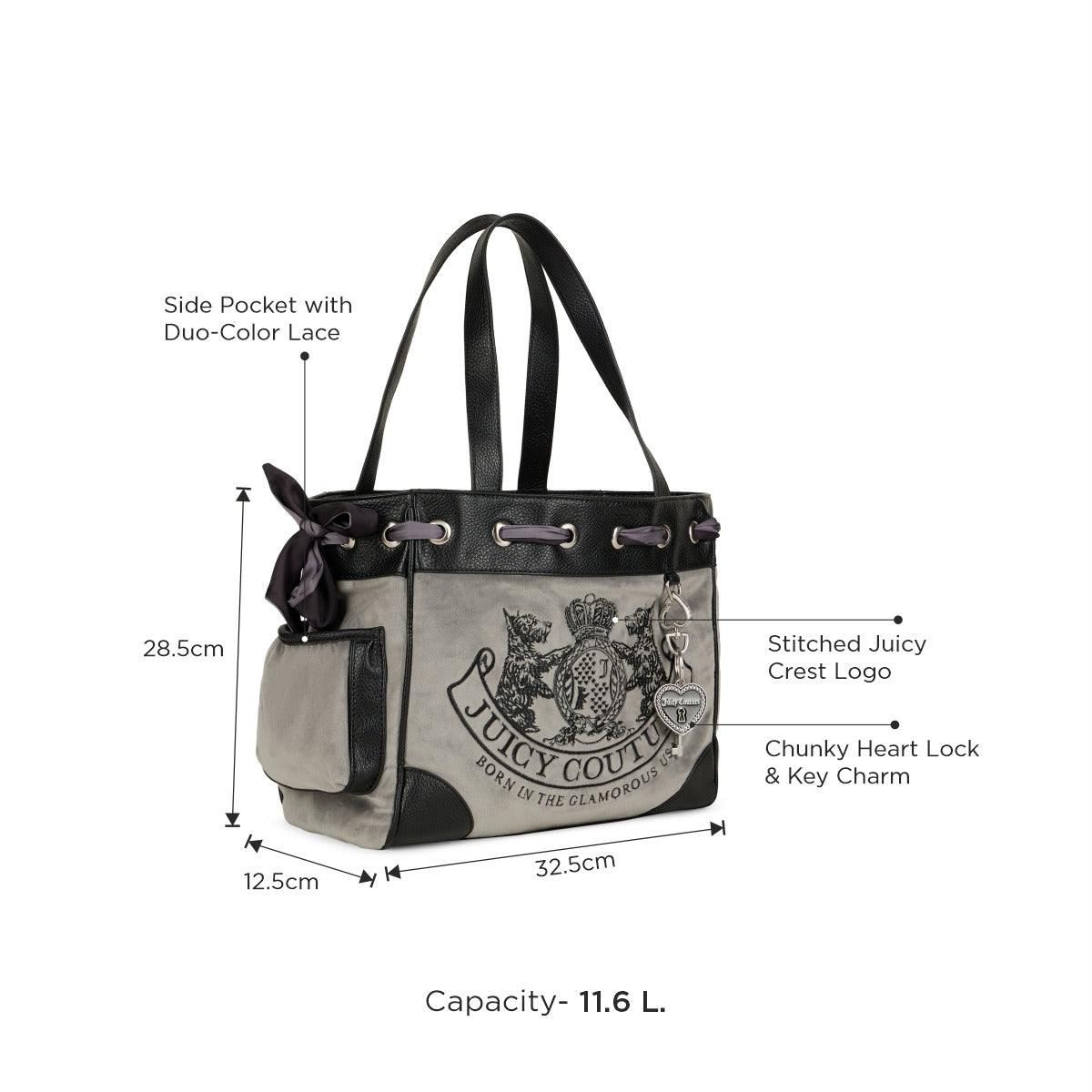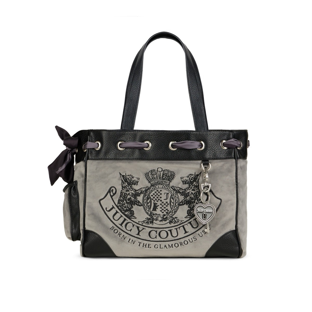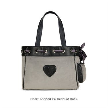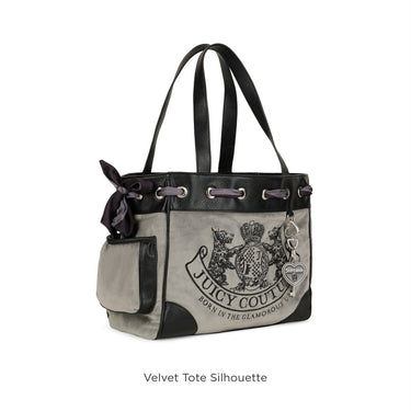- Effortless Glam: Designed in a plush velvet tote silhouette with dual PU grab handles, this piece blends softness with structure. The stitched Juicy crest logo and heart-shaped PU initial at the back add signature charm with a wink of nostalgia.