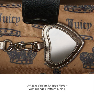 - Inside, It’s All You: With branded pattern lining, two inner slip pockets, a J-shaped zipper puller, and a heart-shaped mirror tucked inside, it’s built for touch-ups, essentials, and everyday glam-on-the-go.