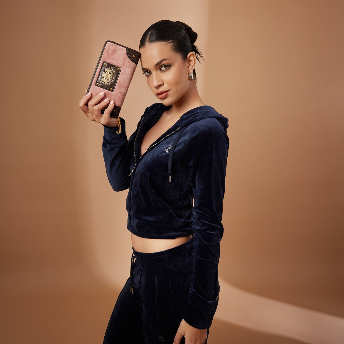 - Soft Touch, Strong Statement: Wrapped in plush velvet with a PU-embossed Juicy crest logo, this zip-around wallet brings everyday glam with a signature J-shaped puller that adds just the right amount of shine.
