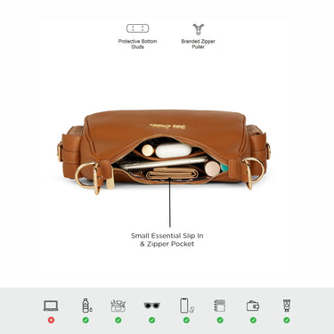 - Premium Craftsmanship – Made with smooth textured PU and finished with branded pattern lining, the bag blends durability with a luxe feel inside and out.