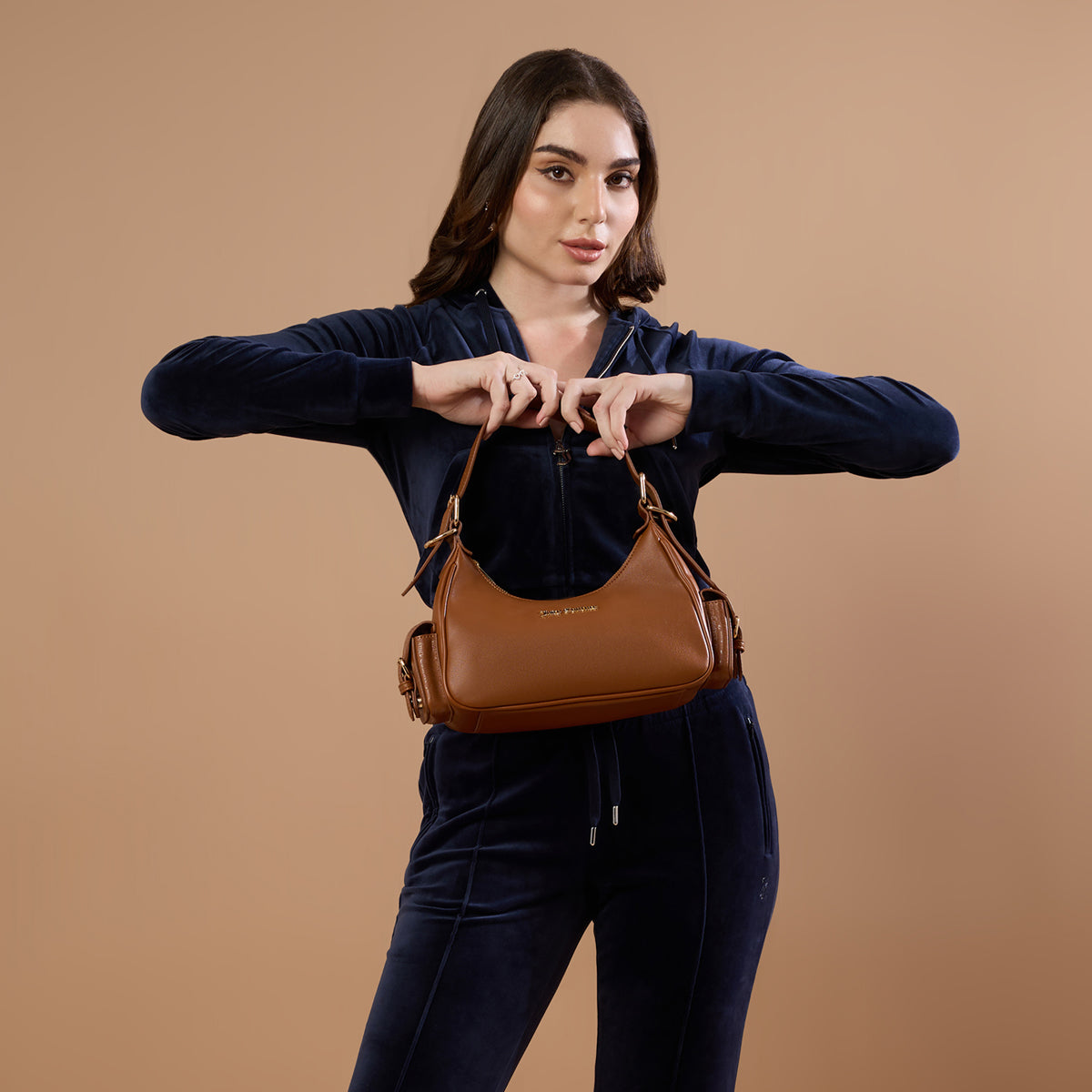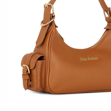 - Signature Juicy Branding – Showcases a gold-tone logo plate on the front, paired with iconic monogram side pockets that add a glamorous and instantly recognizable Juicy Couture touch.