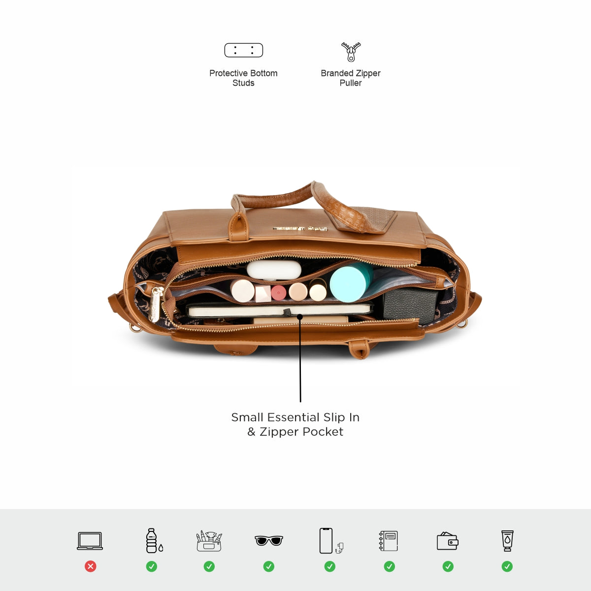 - Versatile & Functional – Includes a detachable and adjustable long strap for hands-free convenience, while protective bottom studs provide structure and safeguard the bag when placed down.