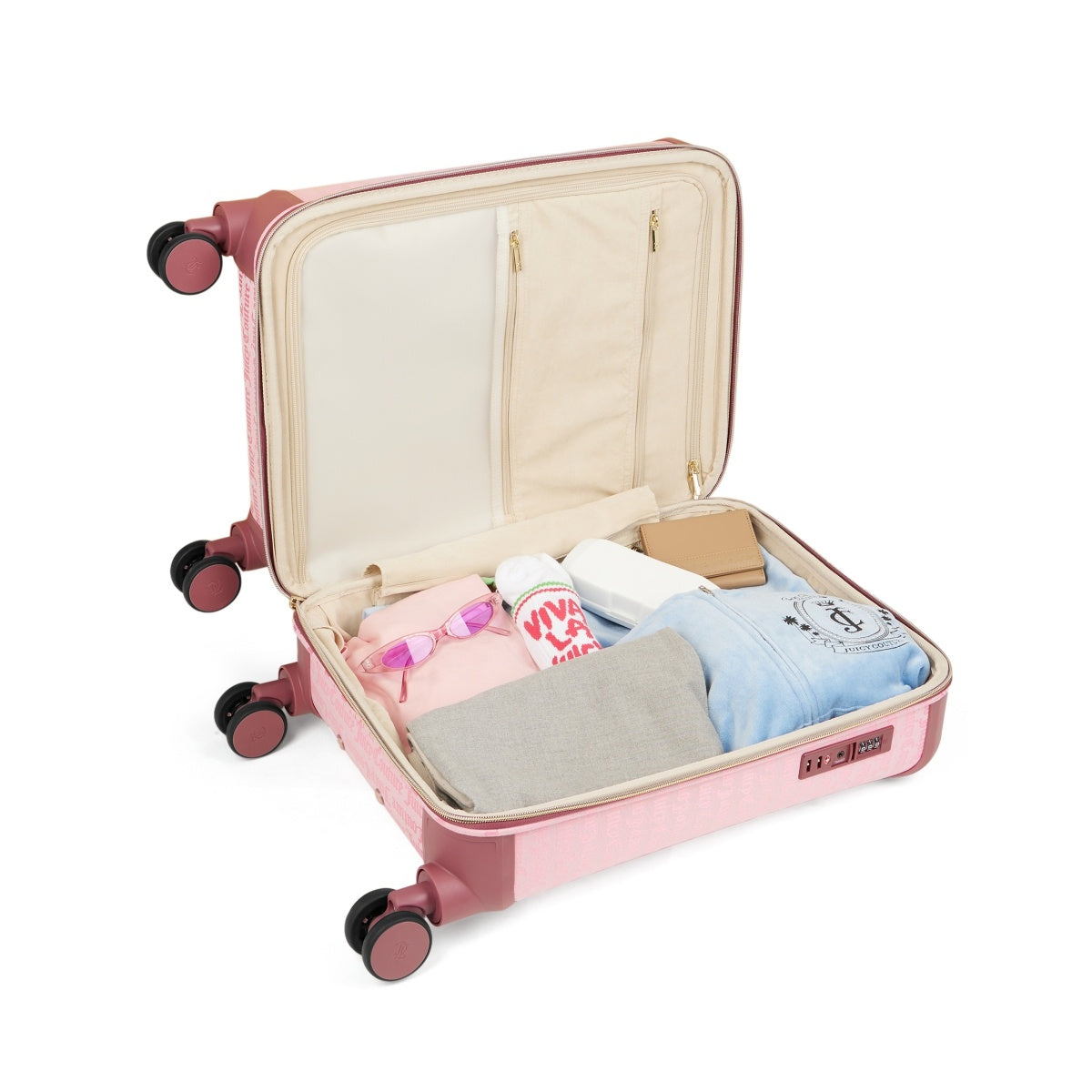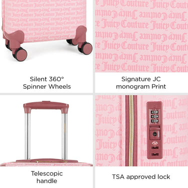 Iconic Exterior: Wrapped in a water-resistant polycarbonate shell with corner guards for extra protection, this beauty flaunts the signature JC jacquard print and branded zipper pullers that scream Juicy from every angle.