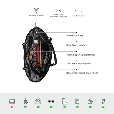 - Inside Scoop: With branded lining, two inner slip pockets, and a secure zipper compartment, it’s built to keep your essentials organized—while still serving major style energy.