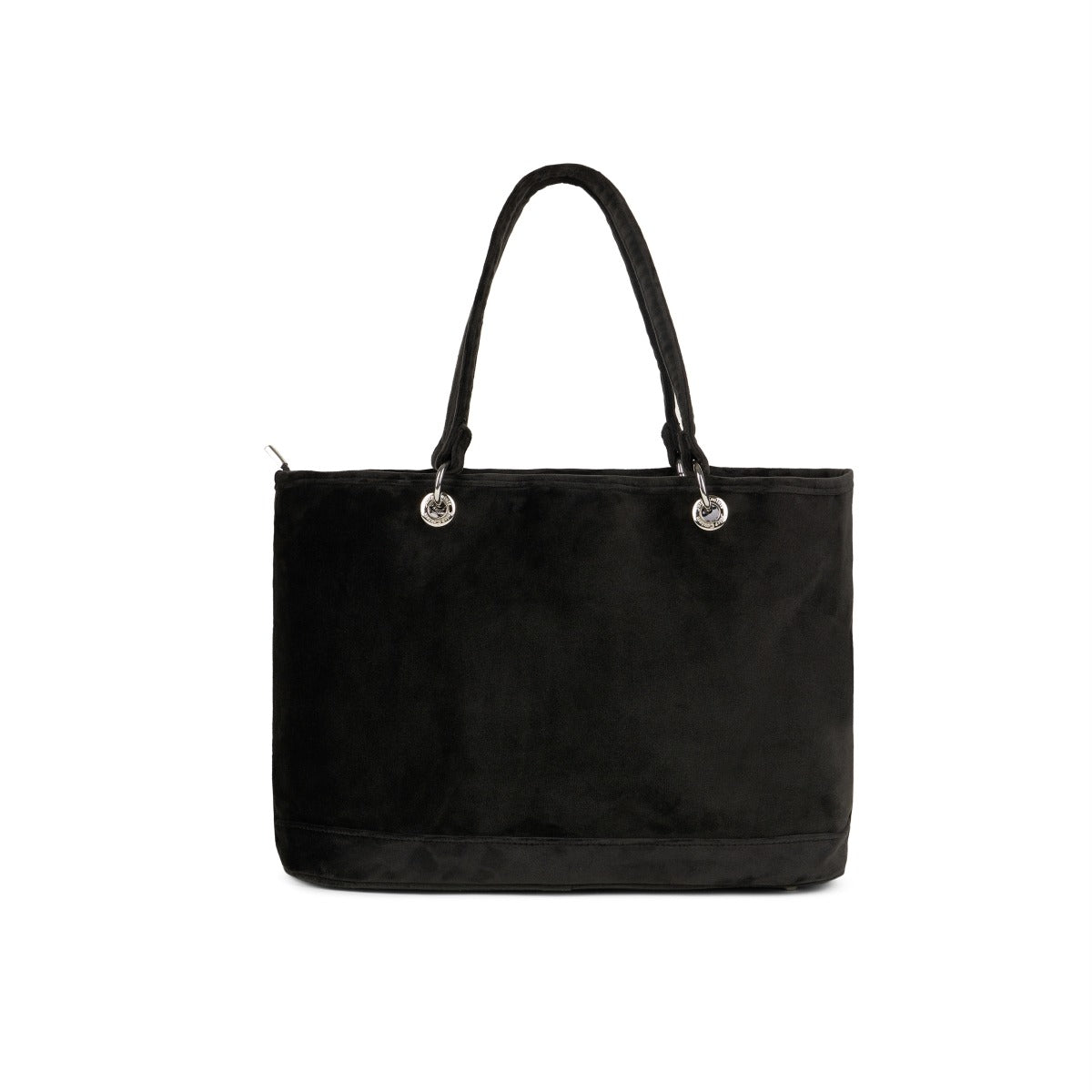 - Soft Glam, Strong Identity: Wrapped in a plush velvet silhouette with iconic front branding and a studded base, this bag blends statement style with everyday ease. Dual grab handles and side snap magnetic closures keep it effortlessly polished.