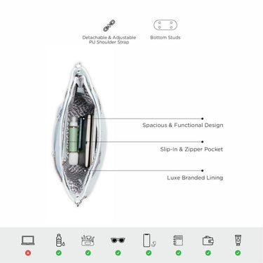 Effortlessly Stylish: Enjoy convenience and comfort with a parallel chain handle with PU grip, smooth zipper puller with ‘J’ hanging, and a detachable, adjustable PU shoulder strap.