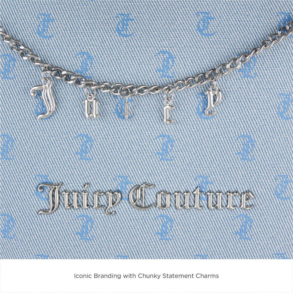 Signature Juicy Couture Elegance: Flaunt your style with luxe PU material, iconic branding, and chunky statement charms that capture the quintessential Juicy Couture charm.