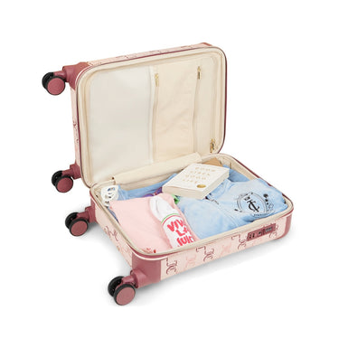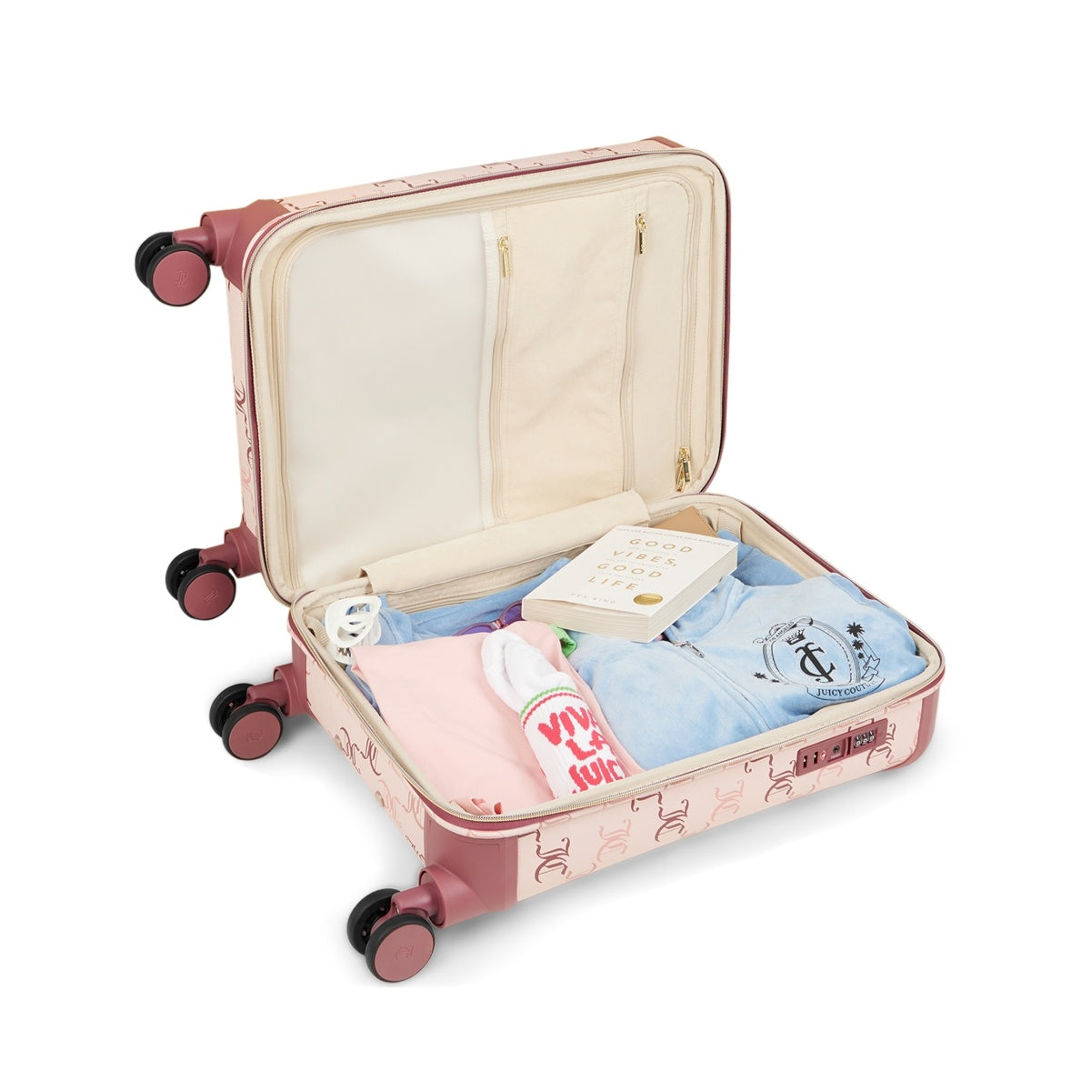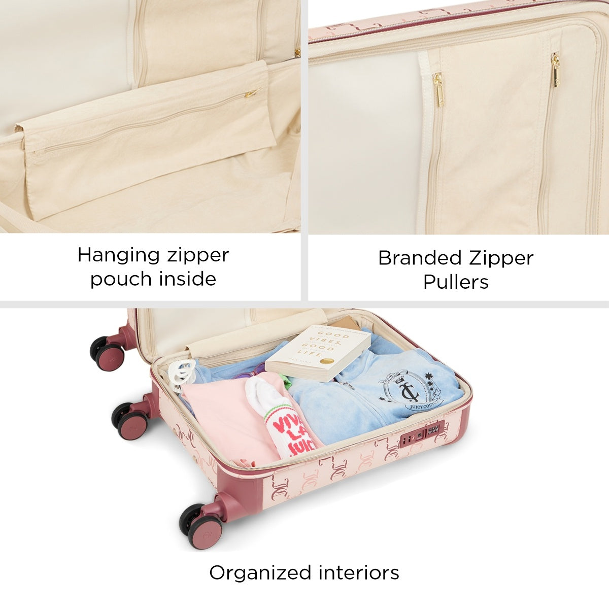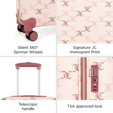 - Iconic on the Outside: Wrapped in a water-resistant polycarbonate shell with corner guards for that extra oomph, this stunner flaunts the signature JC monogram print and branded zipper pullers—because every detail deserves a little drama.