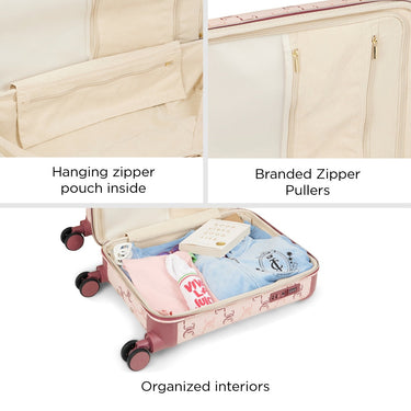 - Inside Scoop: Organized interiors with a hanging zipper pouch keep your essentials in check while you jet-set in style. Packing’s never been this chic.