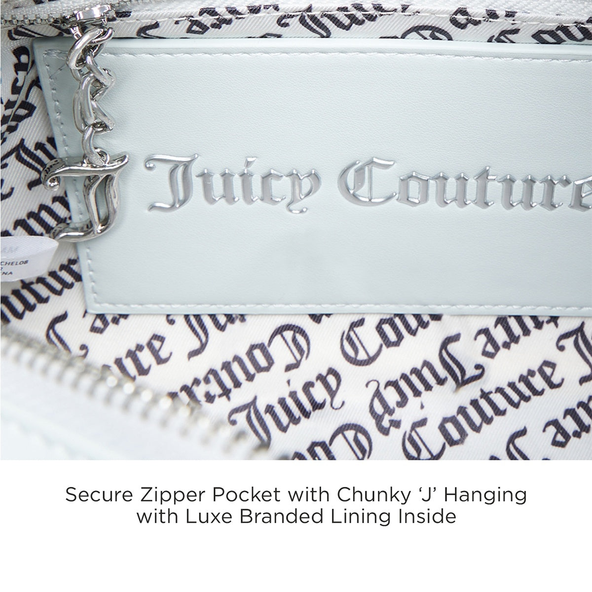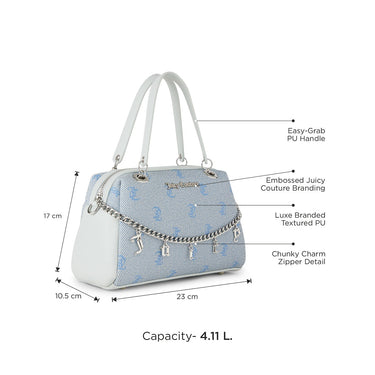 Timeless Juicy Couture Design: Showcase your style with the boxy, structured silhouette and luxe textured PU featuring the iconic JC logo pattern and embossed Juicy Couture branding.