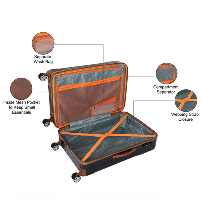 Crafted with precision, the body is made from a durable ABS+PC film combination, striking the perfect balance between resilience and lightweight design. Inside, the 210D heat-embossed lining adds a touch of sophistication, while the front panel's corner guard ensures extra protection.