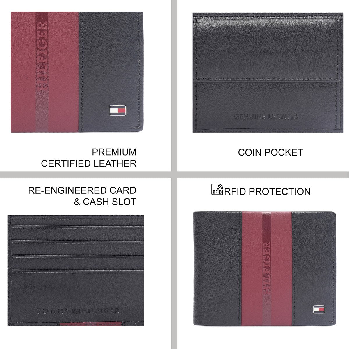 Refined Dual-Tone Craftsmanship: Crafted from premium-certified leather, the Tommy Hilfiger Alimos Men's Global Coin Wallet exudes luxury and durability. Its sleek black and wine add to its timeless charm, ideal for the contemporary gentleman.