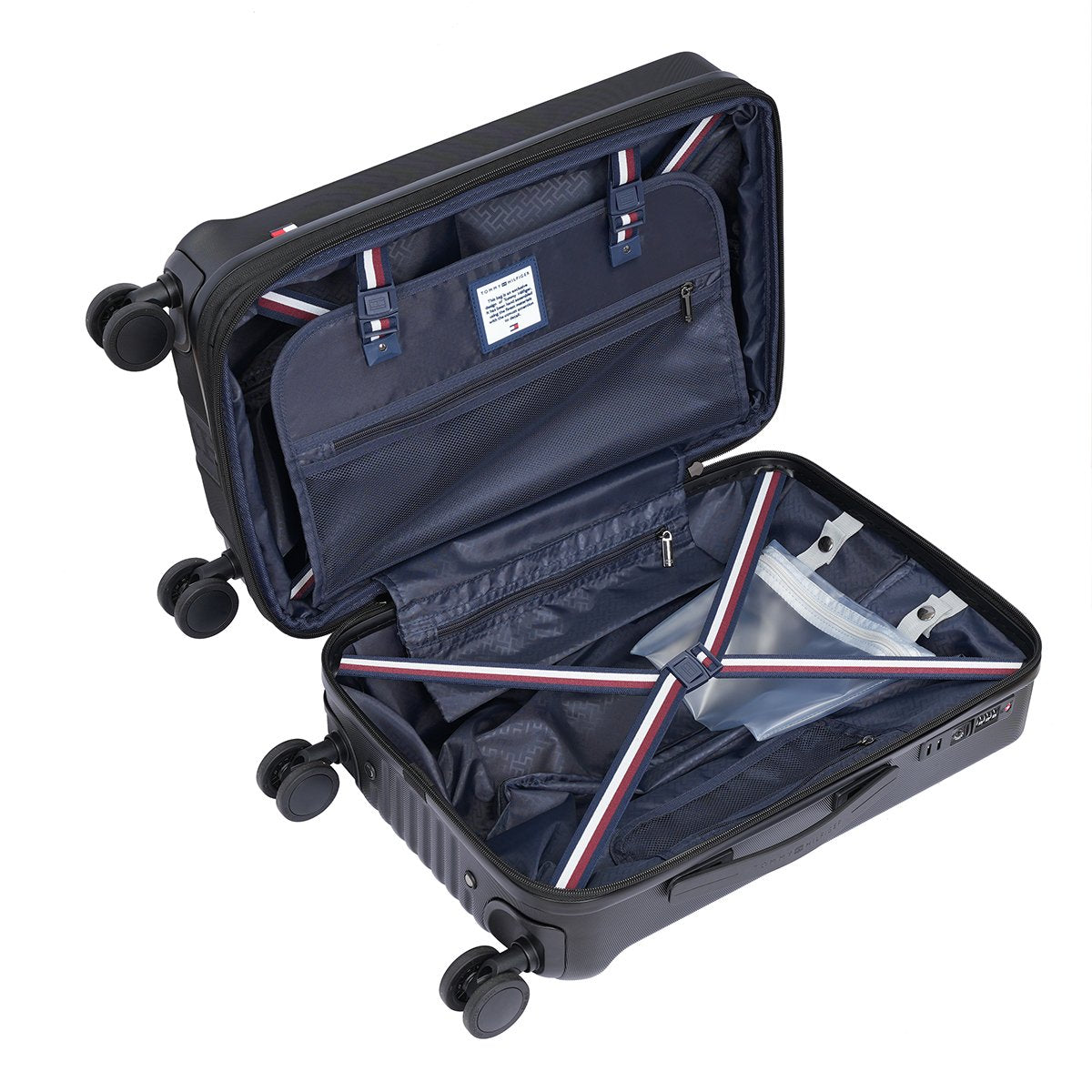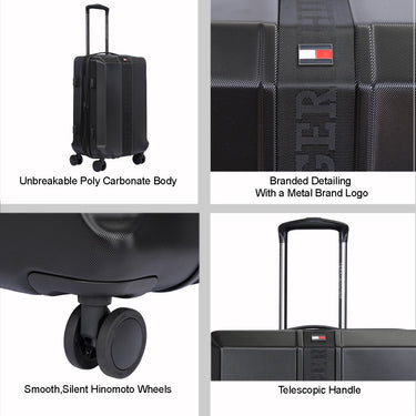 Premium Protection: The Tommy Hilfiger Arbor Luggage combines sleek elegance with functional brilliance. Its unbreakable Poly Carbonate Body and efficient dual compartments, featuring branded metallic pullers, offer ample storage for your travel essentials.