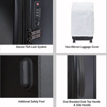 Effortless Travel: A Secure TSA Lock System and Additional Safety Feet provide peace of mind, while the Smooth, Silent Hinomoto Wheels and Telescopic Handle ensure effortless mobility. The Non-Woven Luggage Cover adds an extra layer of protection.