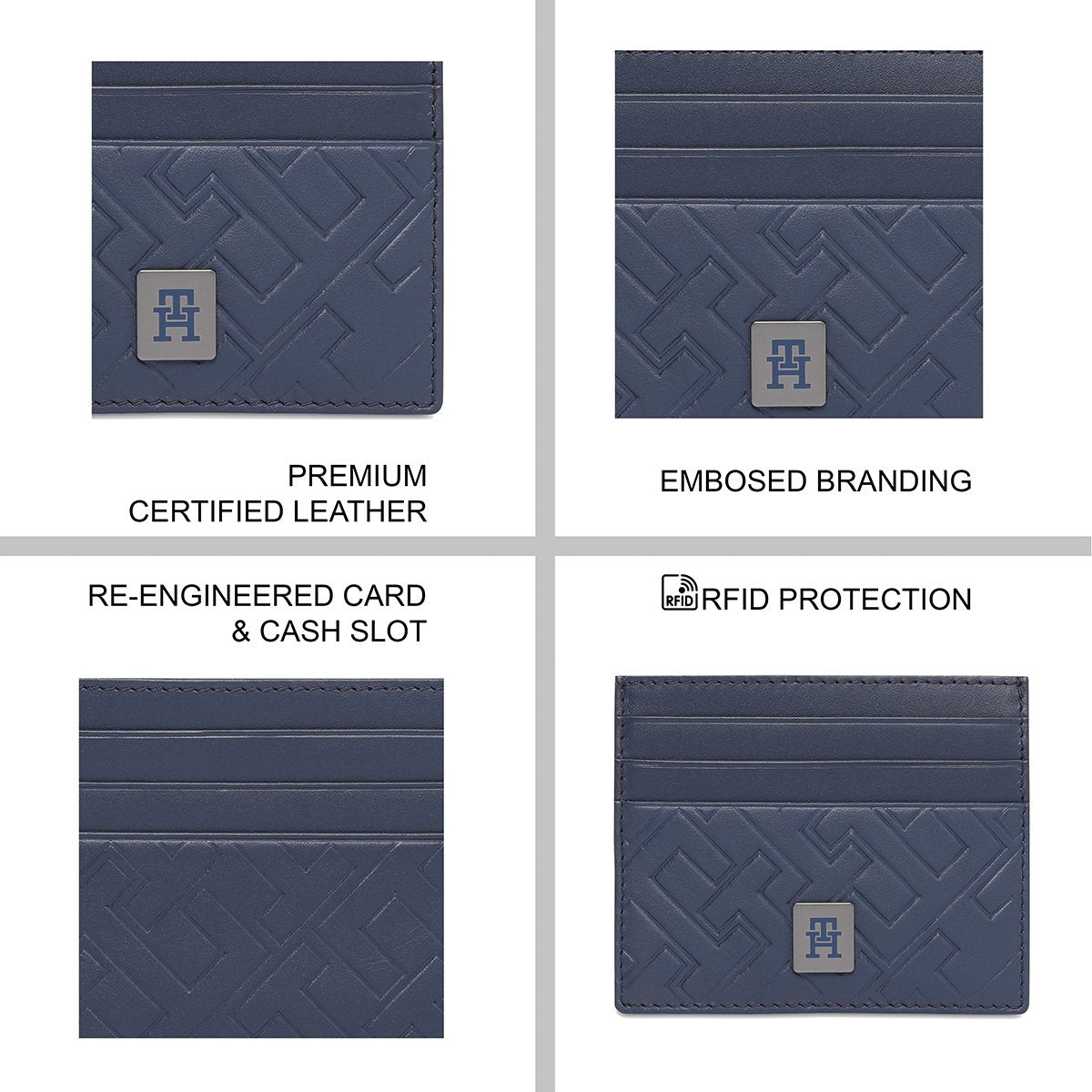 Superior Craftsmanship: Enjoy the luxurious feel of buff leather with the premium cotton lining of this Tommy Hilfiger Ardfin Men's Card Holder in navy. The embossed branding adds a touch of sophistication, making this card holder a true statement piece.