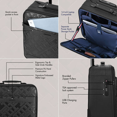 Designed using high-quality PU hard construction, this overnighter offers durability with a refined aesthetic. The signature embossed metal logo and branded metal zipper pullers elevate the overall look with a sophisticated, premium finish.