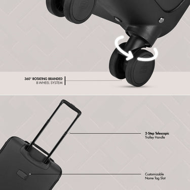 Experience smooth and stable movement with the 360° rotating branded 8-wheel system, engineered for effortless maneuverability. The integrated TSA-approved lock enhances travel security while complying with international standards.