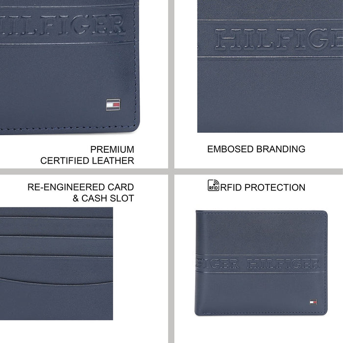Introducing the Tommy Hilfiger Benzonia Men's Leather Wallet, a perfect blend of style and functionality. Crafted with genuine leather and featuring a refined debossed pattern, this wallet is a symbol of sophistication. The cotton lining adds a luxurious touch, while the side closure ensures security. The wallet features two compartments, two pockets, and four card slots. It offers optimal organization in a slim design. The inclusion of RFID protection adds an extra layer of security, safeguarding your personal information. Elevate your accessory game with the Benzonia Men's Leather Wallet.