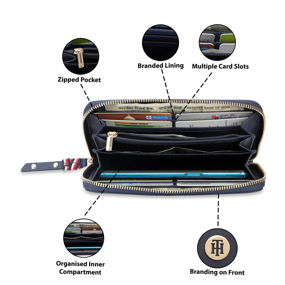 The Tommy Hilfiger Canmore Women's Leather Zip Around Wallet offers a perfect blend of style and functionality. Crafted from high-quality leather, this wallet exudes a luxurious feel. Its zip-around closure ensures the security of your belongings while providing easy access. The Canmore Wallet features a Safiano and cotton twill sub-fabric lining, adding to its durability and sophistication. With its minimalist design, this wallet allows for convenient organization of your essentials. Whether you're running errands or going out for a casual outing, the Canmore Wallet by Tommy Hilfiger is the perfect accessory to elevate your style and keep your belongings secure.