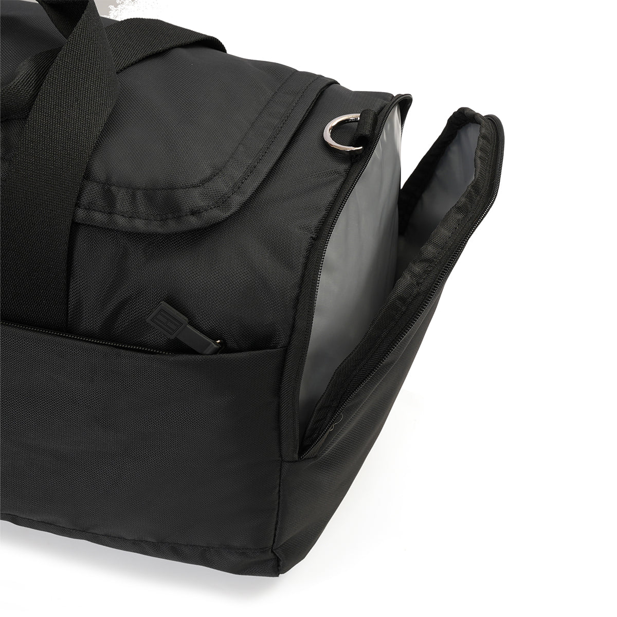 - Purposeful Interior Design: Built for active lifestyles, this gym bag features a mesh pocket with a sturdy metal dog hook for secure storage, plus a cleverly integrated wet compartment within the dual side pockets — ideal for separating damp gear or used gym clothes. An additional internal metal hook adds extra utility for valuables or accessories, keeping everything organized and accessible.