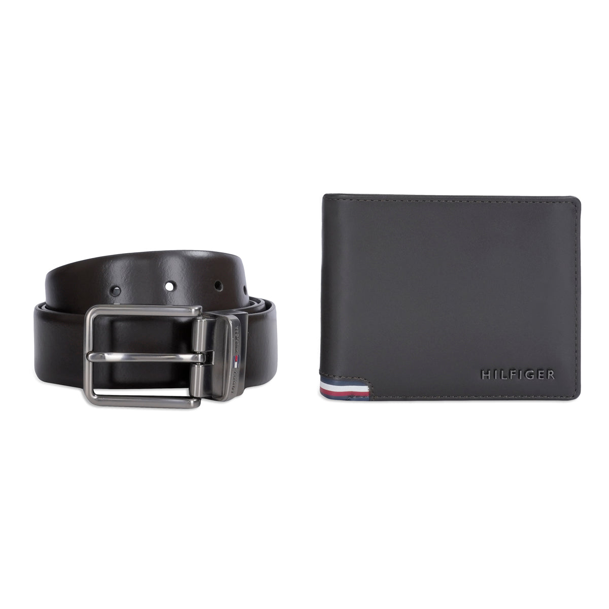 The Tommy Hilfiger Carlotta Belt and Wallet Gift Set epitomizes the perfect blend of elegance and practicality. This formal men's set features a reversible leather belt that offers two stylish options, ensuring versatility for various occasions. It is complemented by a slimfold wallet, efficiently designed with two compartments and eight card slots for optimal organization. Both items showcase a sophisticated solid pattern, characteristic of the Tommy Hilfiger brand's commitment to quality. The belt's pull and twist prong closure provides a secure and adjustable fit, while the wallet's compact design ensures it fits comfortably in your pocket. This set is an ideal choice for the discerning gentleman looking to add a touch of class to his accessory collection.