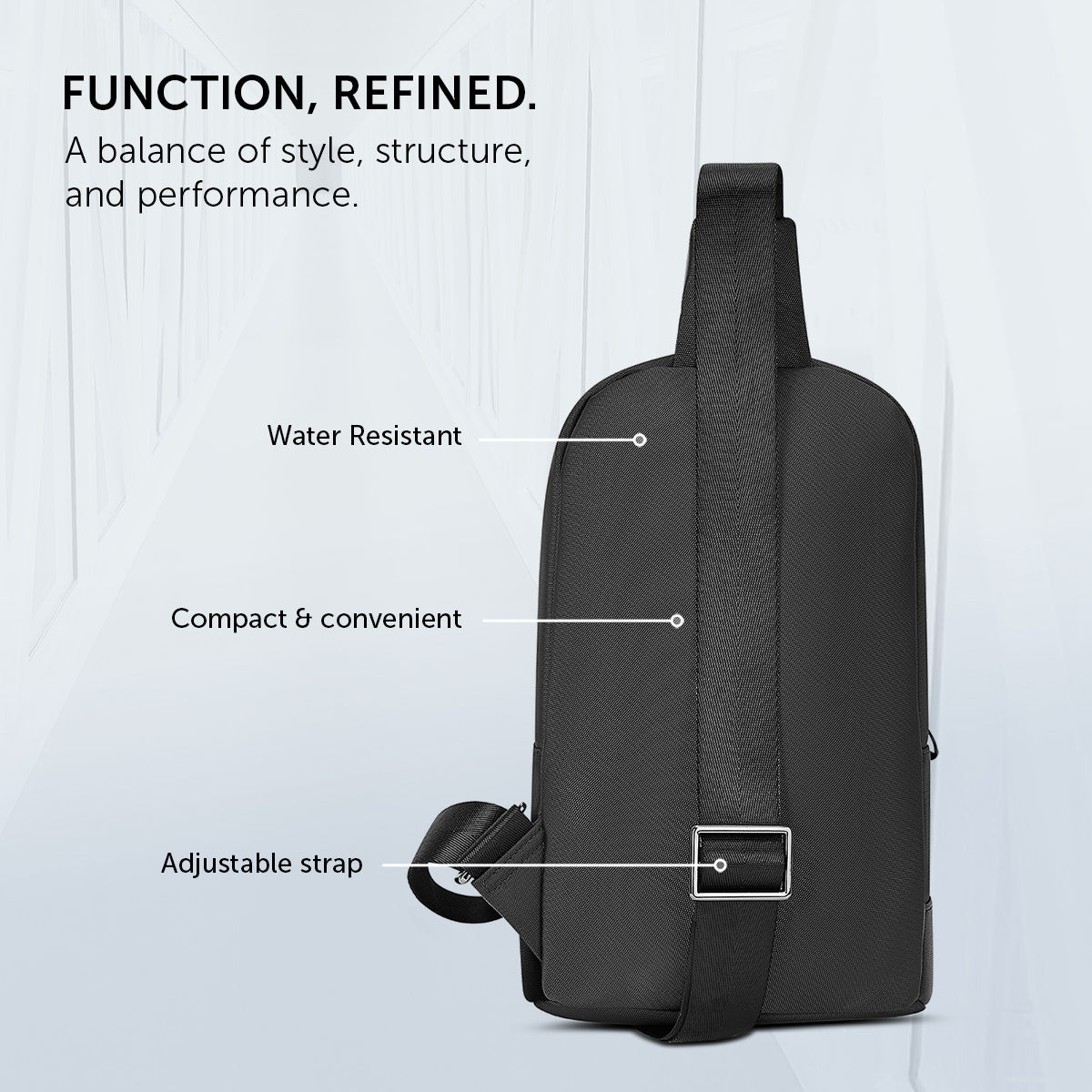 Crafted from high? quality water? resistant material, this bag offers protection against light rain and accidental spills while maintaining a sleek, modern finish that’s built to last.
