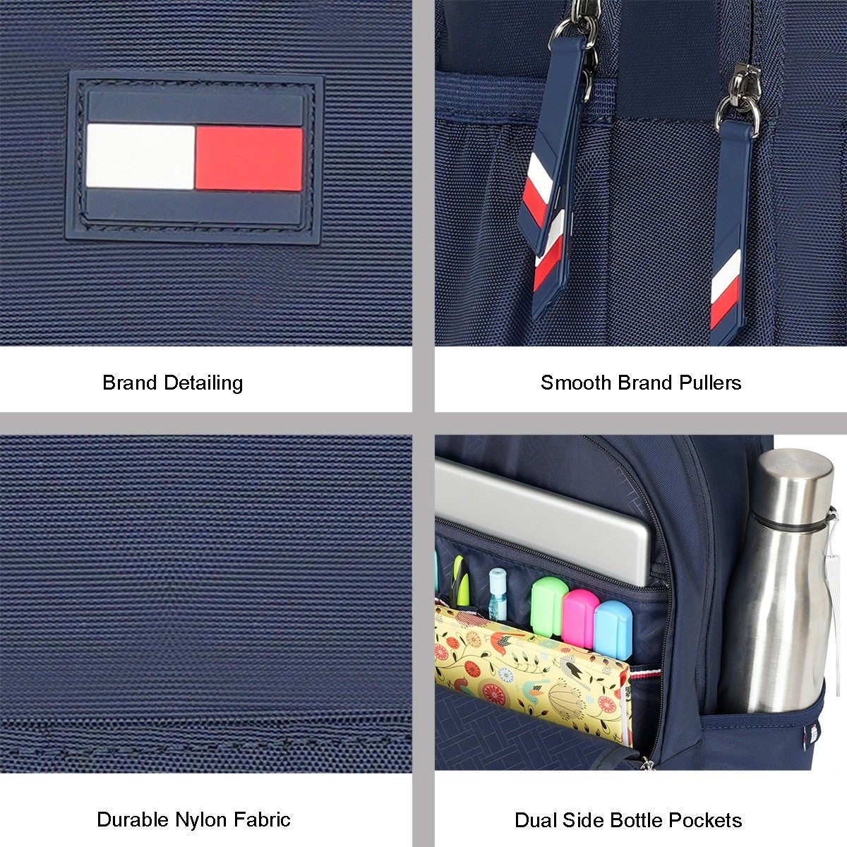 This timeless Tommy Hilfiger Cowper Backpack seamlessly blends classic design with modern functionality, crafted from high-quality, water-resistant twill textured polyester. Featuring iconic Tommy Hilfiger branding, it boasts a sophisticated look. With a comfortable mesh back, padded file sleeve, and multiple compartments, this backpack is designed for students, ensuring organization and protection.