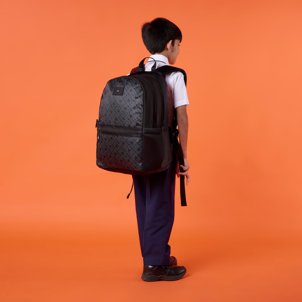 Monogram detailing adds a premium look. Modern and refined styling. Suitable for confident students. Elevates school style. Distinct yet practical.