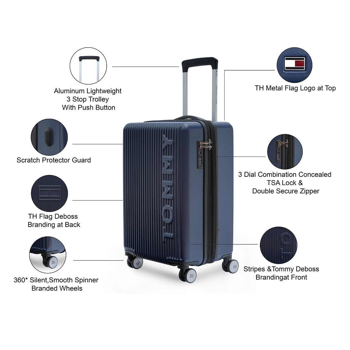 Attain Empire State of Mind, with the stylish Tommy Hilfiger Empire Hard Luggage. The bold design mixed with elegant features makes it a go-to luggage for the go-getters as well as jet-setters. The elevated branding on both sides, along with vertical stripes adds a unique touch to it. With all this style, functionality isn’t left behind, as the hard luggage also features secure three dial TSA combination lock, light-weight trolley handle system, scratch protector guard, double secure zipper and 360 degree smooth spinning branded wheels. So, don’t wait up, get the Tommy Hilfiger Empire Hard Luggage and #TravelwithStyle.