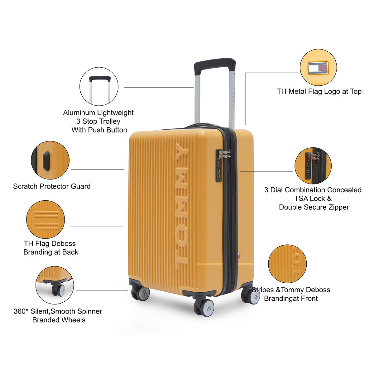 Attain Empire State of Mind with the stylish Tommy Hilfiger Empire Hard Luggage. The bold design mixed with elegant features makes it a go-to luggage for go-getters as well as jet-setters. The elevated branding on both sides, along with vertical stripes, adds a unique touch to it. Additionally, the bag features an expander that allows you to increase packing space when needed, providing extra room for those must-have travel essentials or souvenirs from your trips.