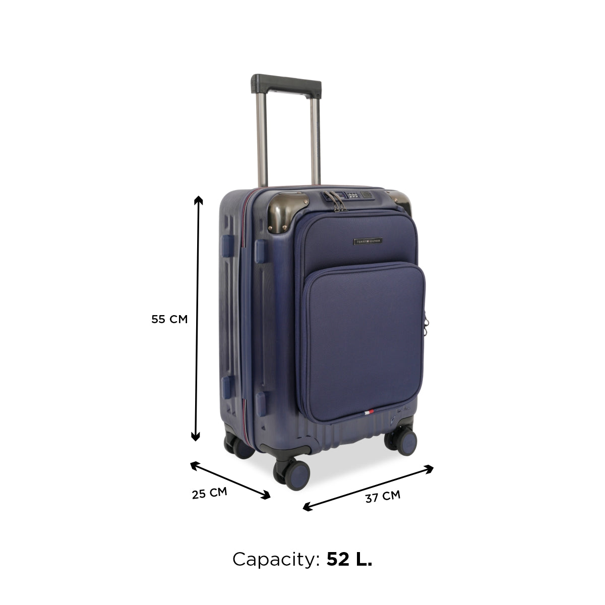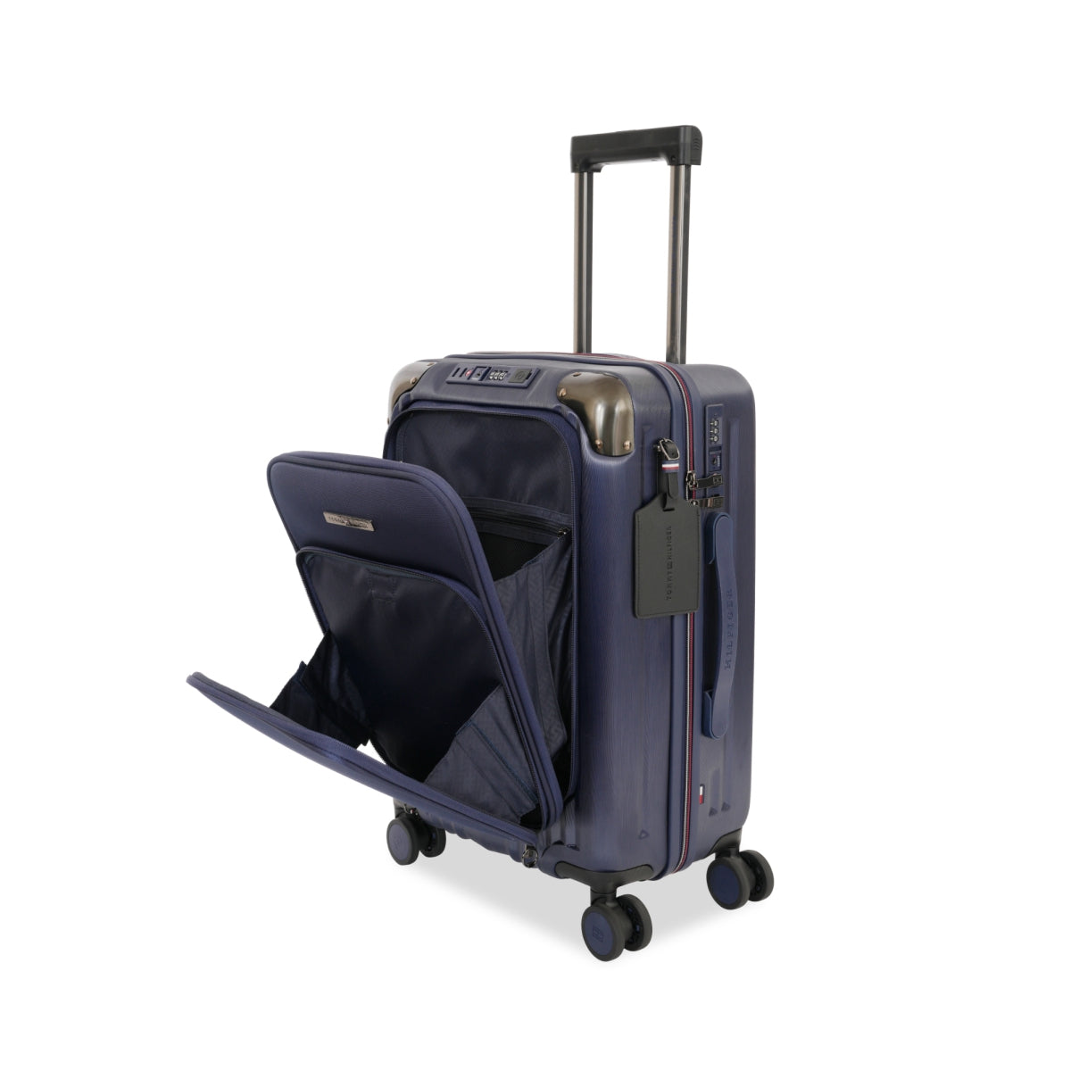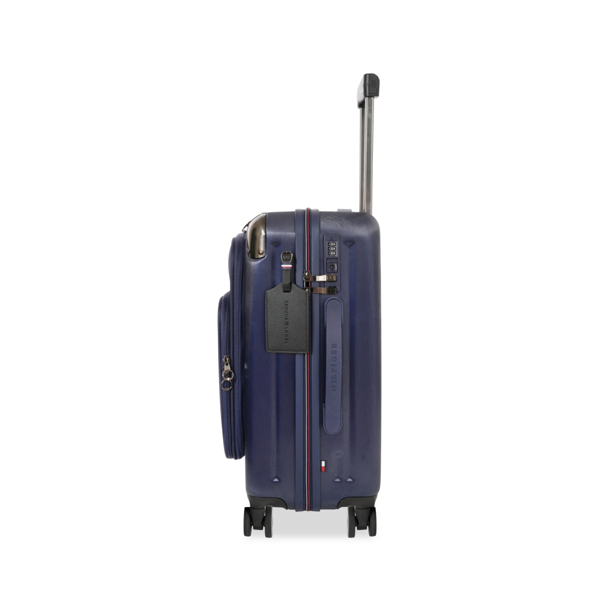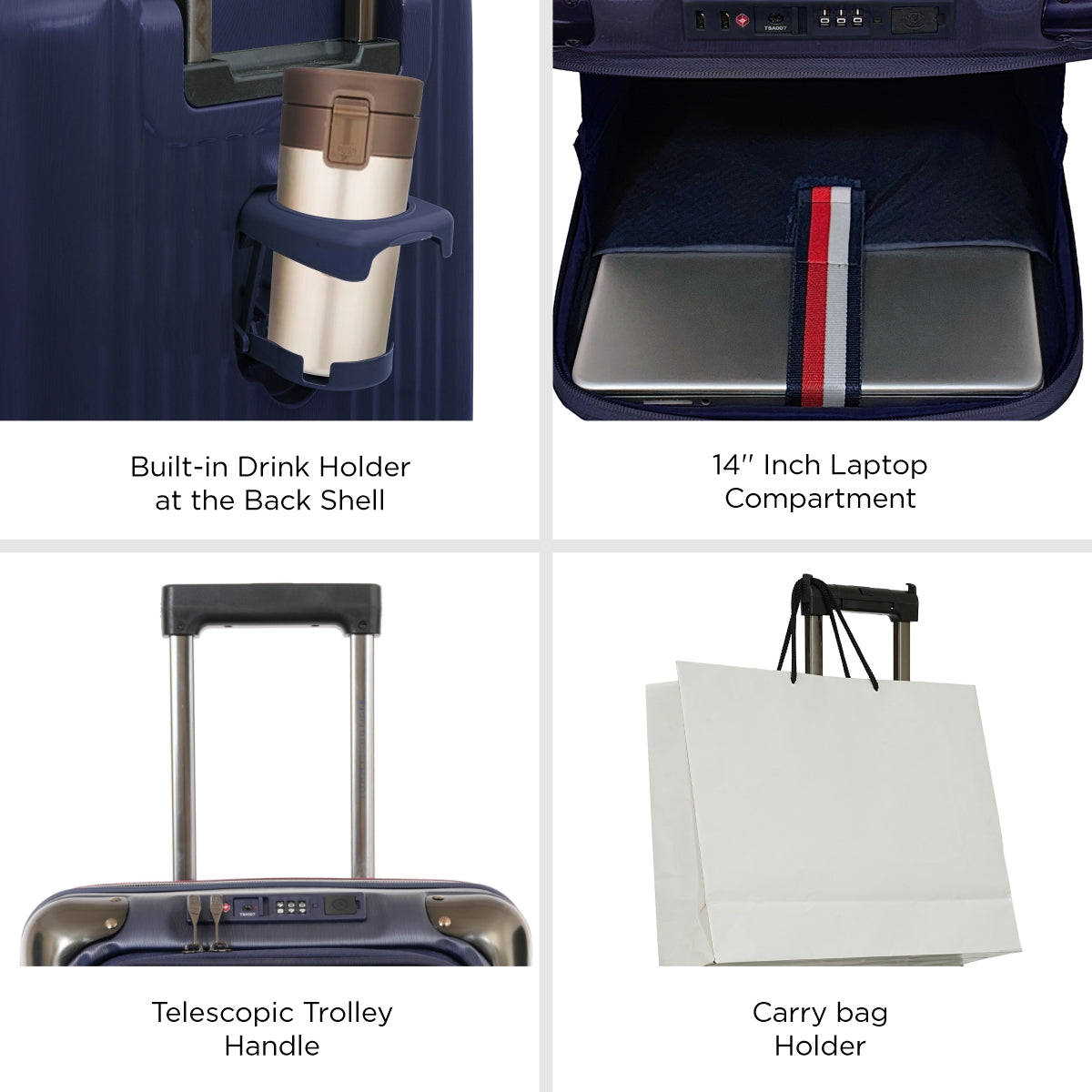 Premium & Durable Exterior: Crafted with a durable PC hard shell and a soft front pocket for quick access, this luggage combines a sleek, professional design with a classic signature look. It features a smooth-gliding 360° rotating 8-wheel system, sturdy branded double grab handles, and a telescopic trolley handle, all complemented by branded zipper pullers and a stylish Tommy Hilfiger luggage tag.