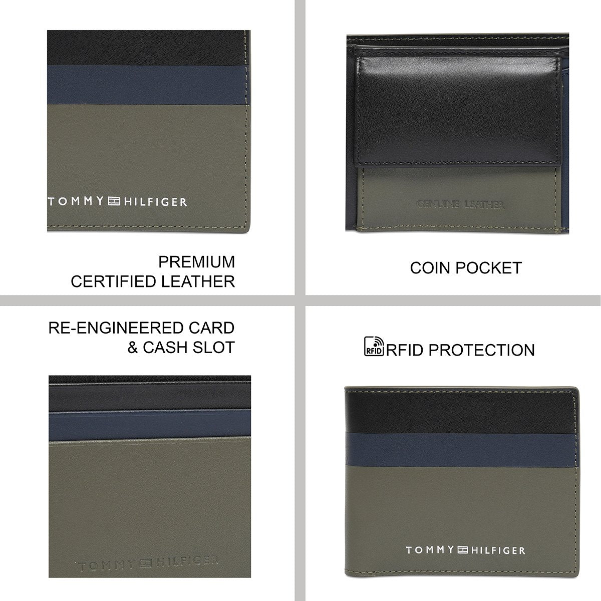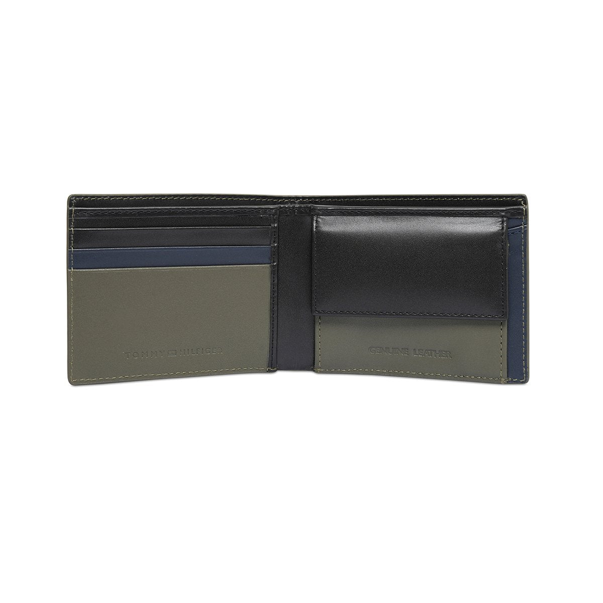 Organized Elegance & Security: The Tommy Hilfiger Gospic Men’s Global Coin Wallet in olive features re-engineered card and cash slots, along with a convenient coin pocket, all enhanced with RFID protection to keep your essentials secure and stylishly organized.