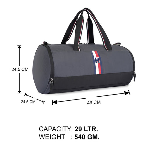 Embody bold style with iconic cylindrical shape and eye-catching TH printed graphic – perfect for individuals seeking a fashionable, statement-making gym bag.