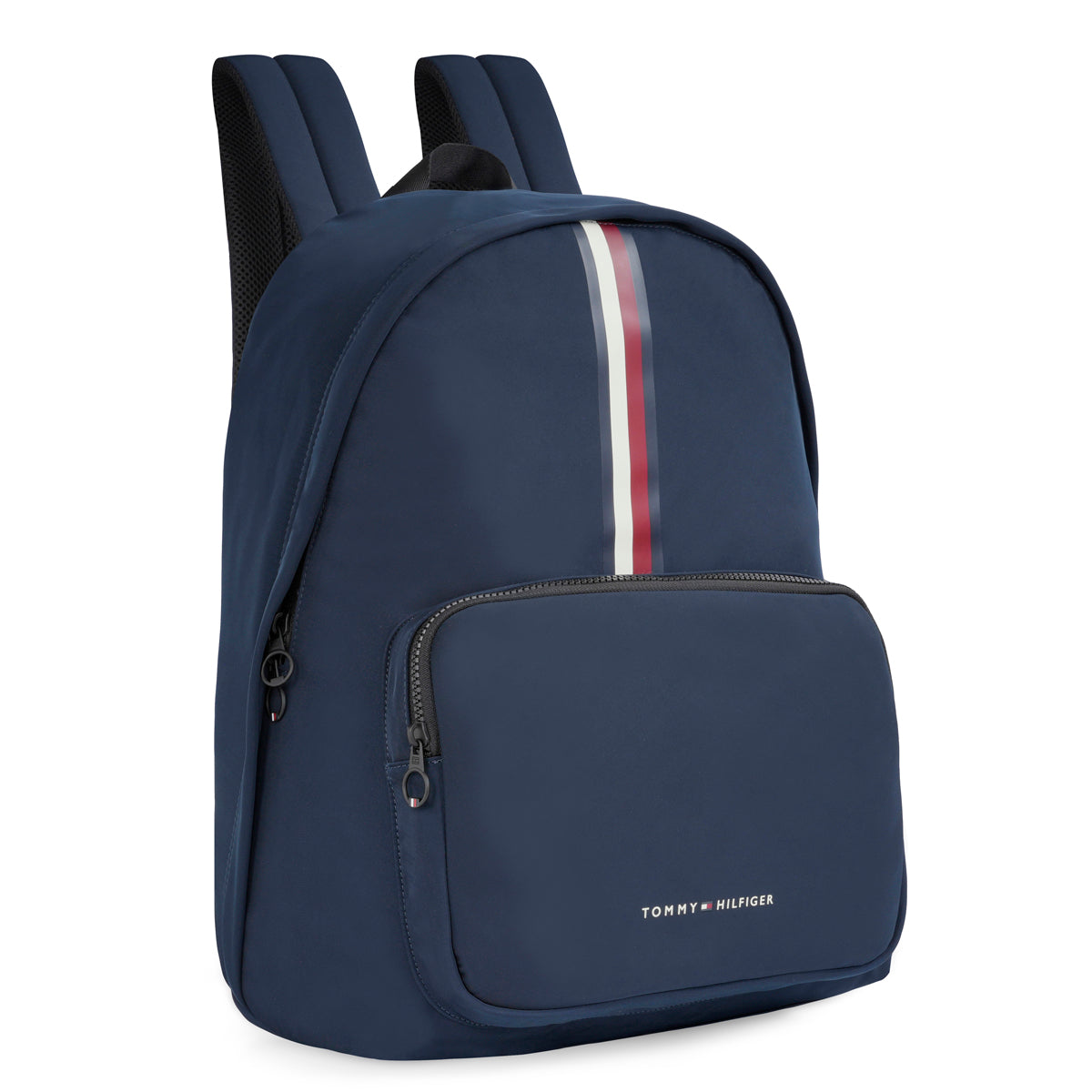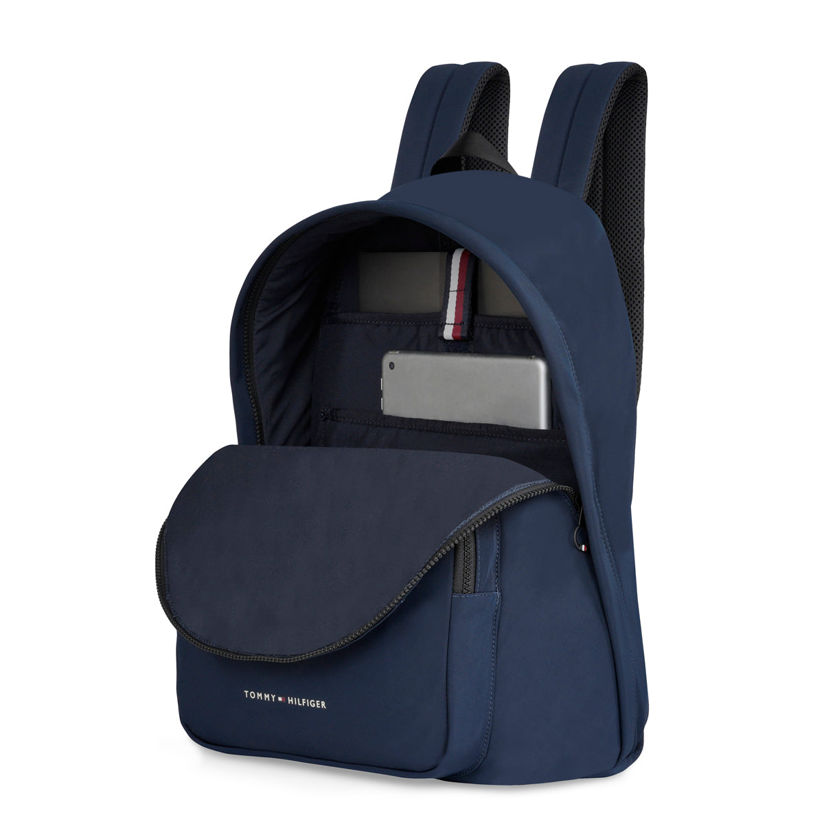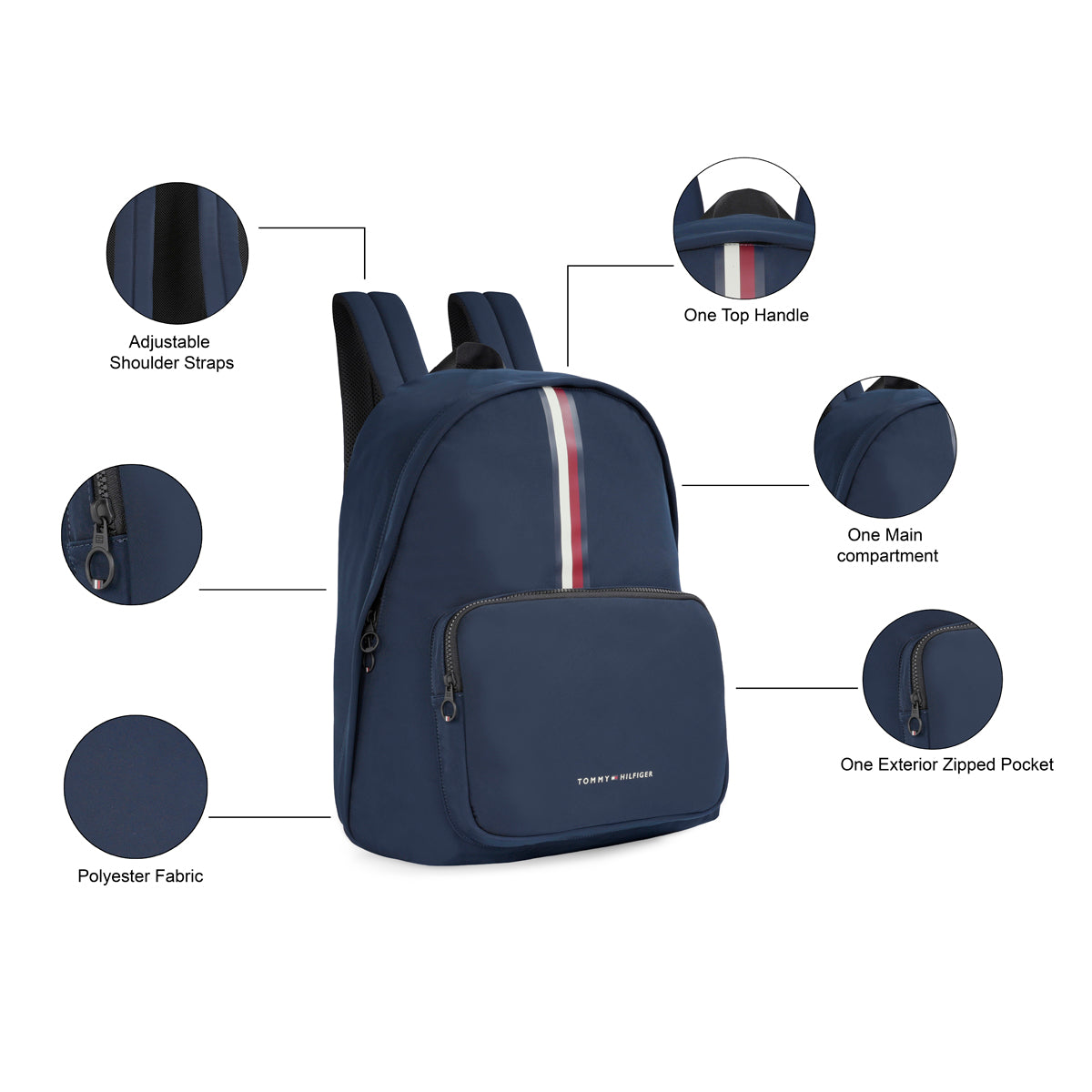 Step into the realm of sophisticated fashion with the Tommy Hilfiger Herne European Line Backpack. A standout piece from the distinguished Tommy Hilfiger TRAVEL GEAR collection, this backpack perfectly embodies formal flair. Meticulously crafted from top-grade PU, its signature pebbled texture showcases its exquisite quality. The inside features a soft polyester lining, complemented by an ingeniously designed pocket for organized storage. An external pocket ensures easy access to your essentials. Secure your belongings with the sleek dual-zipper system. Holding it is a delight with its sturdy PU handle. Designed for the contemporary man, the Herne is not just a backpack—it's an emblem of elegance and functionality. Choose Herne; choose unparalleled style.