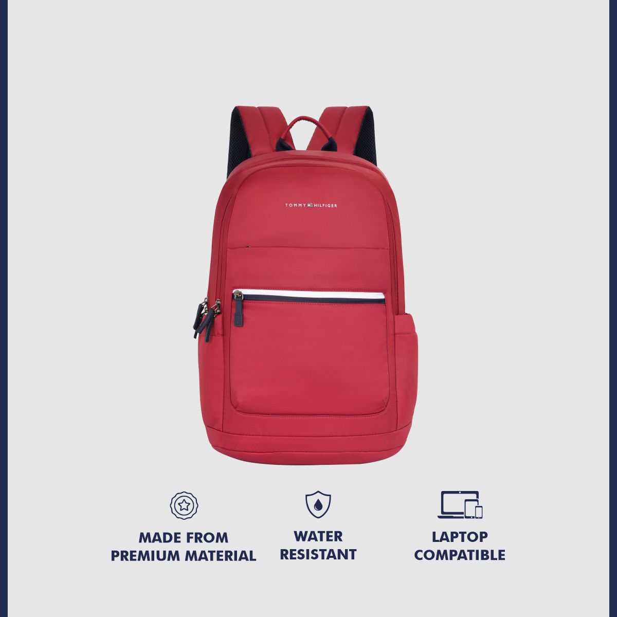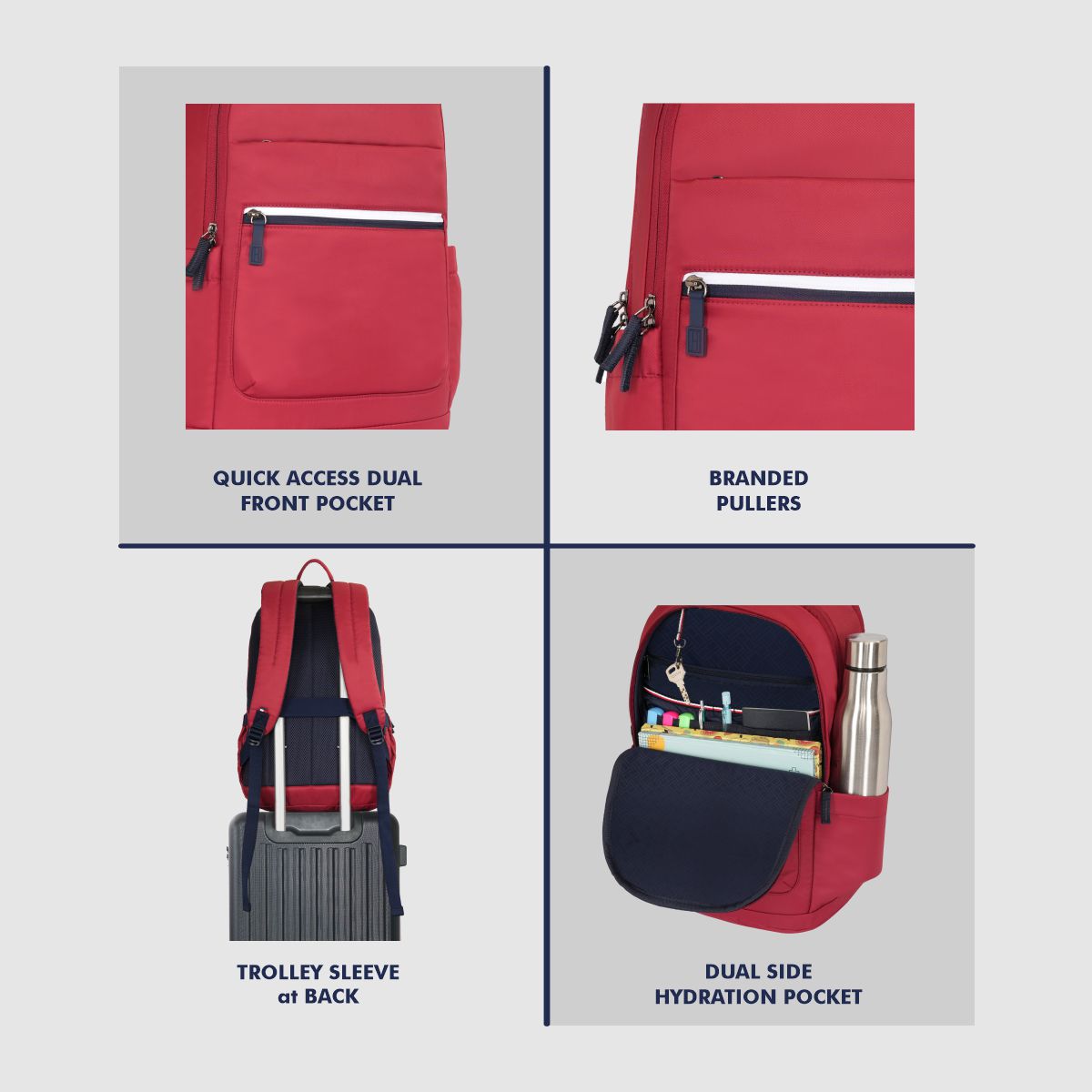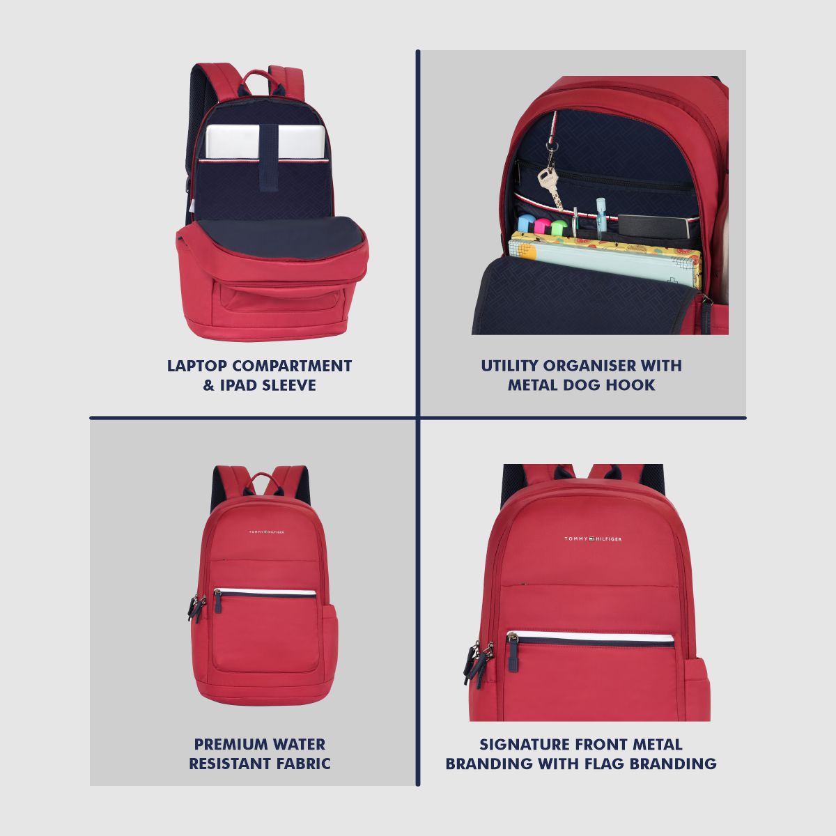 Featuring iconic metal branding and flag detailing, this backpack makes a bold statement wherever you go. Thoughtful touches like branded pullers, a trolley sleeve for travel, and dual side hydration pockets ensure comfort, accessibility, and a polished finish—perfect for work, school, or weekend getaways.