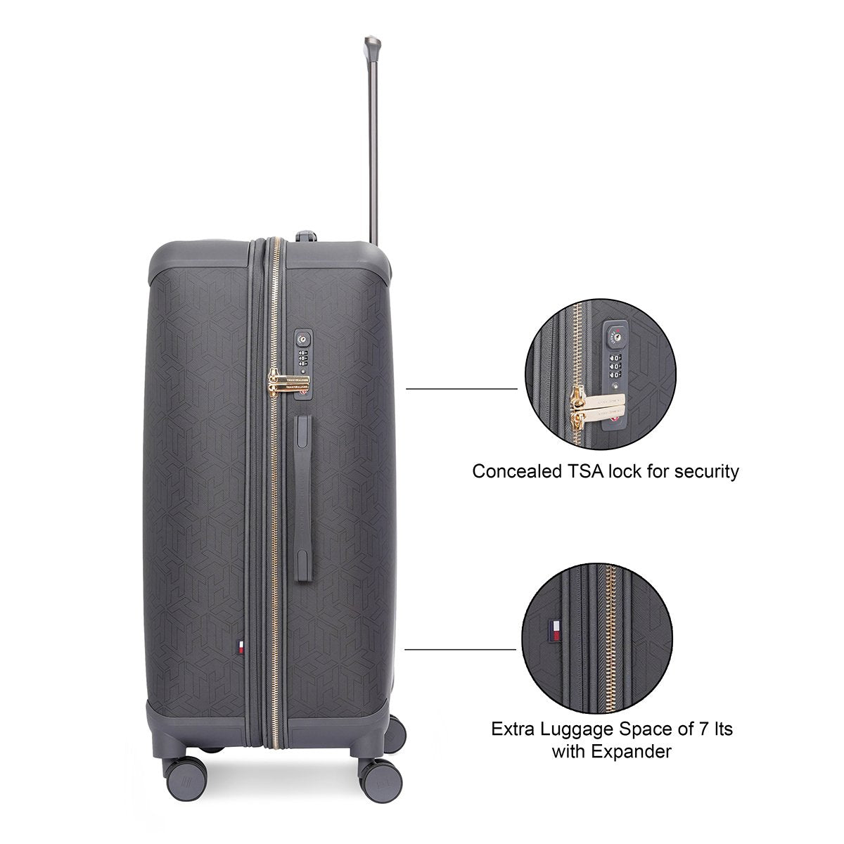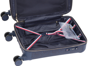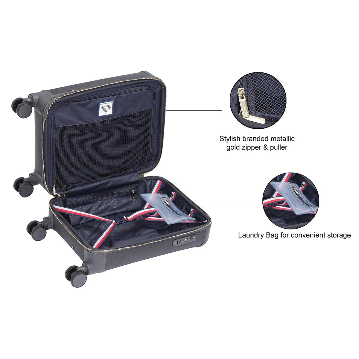 The Tommy Hilfiger Jazz Luggage redefines luxury travel with its avant-garde design, expertly blending robust polycarbonate with sumptuous soft materials. Each detail exudes sophistication, from the dazzling golden zipper chain that adds a touch of glamour to its lightweight construction ensuring effortless travel. This distinctive mold not only enhances style but also embodies the elegance Tommy Hilfiger is renowned for. The Jazz Luggage is more than an accessory; with its innovative luggage expander and standout design, it makes a bold statement for those who seek the pinnacle of elegance at every journey's checkpoint.