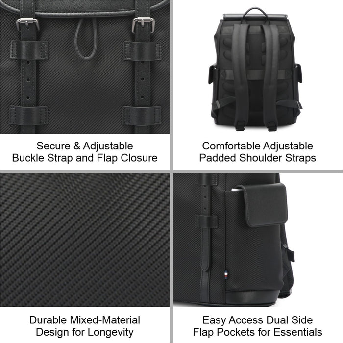 Enjoy convenient features like single-handle design, secure buckle strap and flap closure, and easy-access dual side flap pockets – plus comfortable adjustable padded shoulder straps and EVA padded back support for all-day comfort.