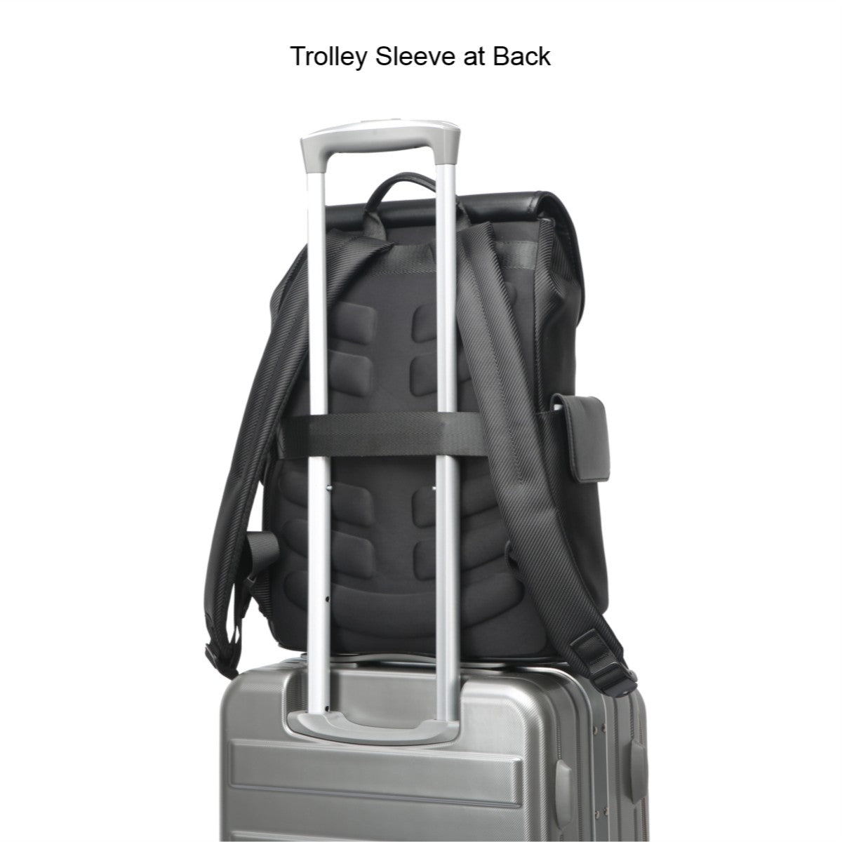 Discover a thoughtfully designed interior with protected laptop & iPad space, organised small item storage, and smooth microfibre pullers – paired with a trolley sleeve for seamless luggage attachment, ensuring every journey is effortless and enjoyable.