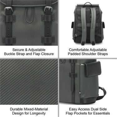 Enjoy convenient features like single-handle design, secure buckle strap and flap closure, and easy-access dual side flap pockets – plus comfortable adjustable padded shoulder straps and EVA padded back support for all-day comfort.