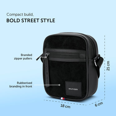 The Tommy Hilfiger Coniston Cross-body is the ultimate in style and functionality. This sleek and classy business case is the ideal travel companion, combining functionality and elegance in one package. This cross-body is made of premium leather in a timeless black colour and features a stripe printed design, which adds a touch of modernity to its classic charm. The flexible and detachable webbing strap of this bag allows you to carry it comfortably as a cross-body or easily convert it into a portable case. The interior is lined with soft cotton to keep your belongings protected. The Tommy Hilfiger Coniston Cross-body is the ideal combination of fashion and utility for a day at the office or a casual outing.
