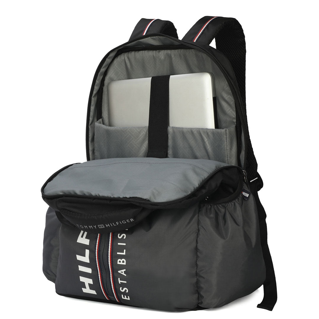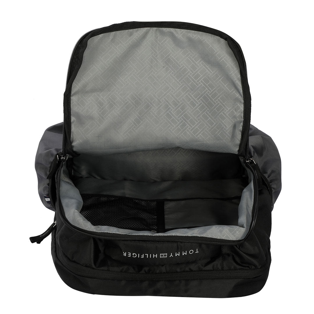 Tommy Hilfiger Kyler laptop backpack features multi-compartment pockets. This backpack allows daily commuters and backpackers, to carry multiple things, in a hassle-free manner. The internal spacious compartments are designed to store daily essentials, 15-inch laptop and multiple small essentials like charger, keys and wallet.