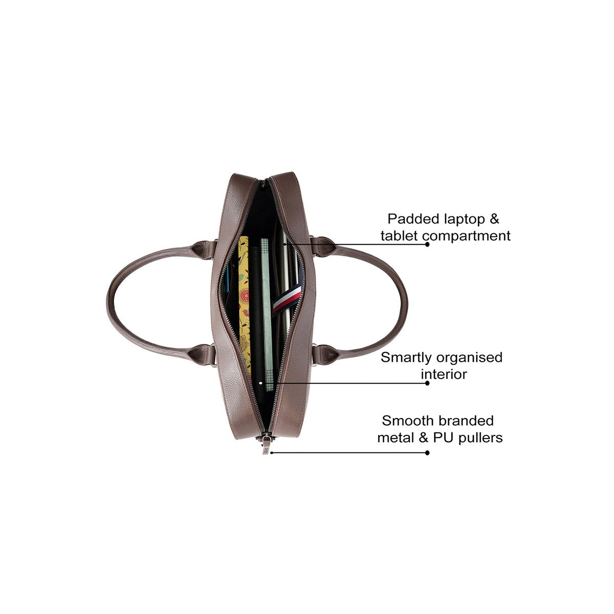 Smart Organization & Tech-Savvy: Designed for the modern professional, it features padded compartments for laptops and tablets, along with a thoughtfully organized interior to keep essentials neatly in place. Smooth metal and PU pullers enhance durability and style.