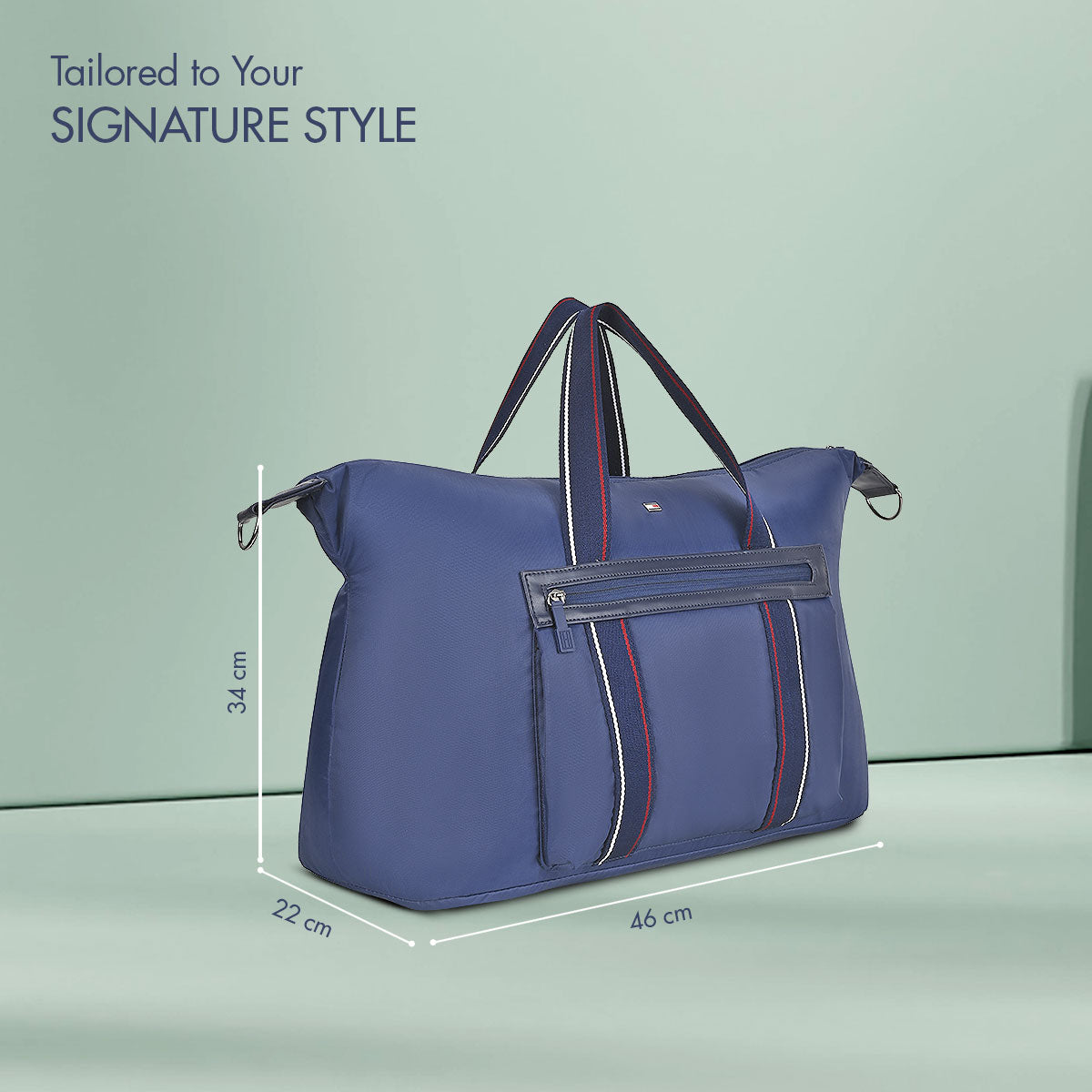Featuring a metal flag emblem, smooth branded pullers, and webbing with Hilfiger print, the bag carries a distinctive designer identity that blends sophistication with sporty appeal.