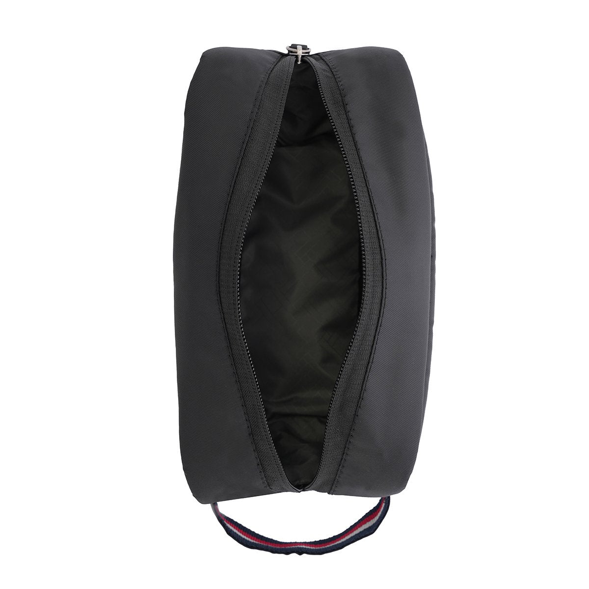 Refined Simplicity: The Tommy Hilfiger Livonia Toiletry Case in black showcases a sleek, solid design that radiates understated elegance. The minimal branding subtly signifies luxury, making it a true status symbol for the discerning traveler.