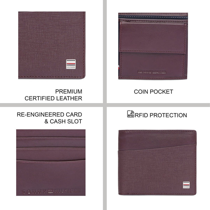 Timeless Sophistication: Crafted from superior certified leather, this Tommy Hilfiger Lomond Men's Global Coin Wallet delivers a luxurious experience and enduring strength. The elegant wine design brings a sense of classic refinement, perfect for the discerning man.