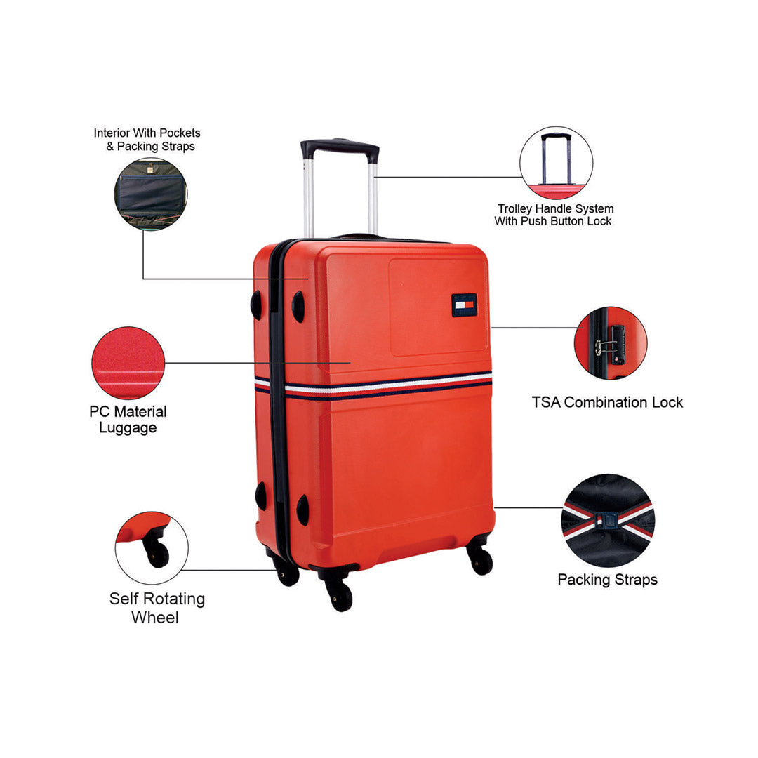 Tommy Hilfiger Marshall reflects the classical design of Tommy Hilfiger. Curated with polycarbonate this trolley luggage is tough and sturdy. This bag is light-weight and features 360-degree rotatable wheels along with a retractable trolley handle, which makes it easy to carry around